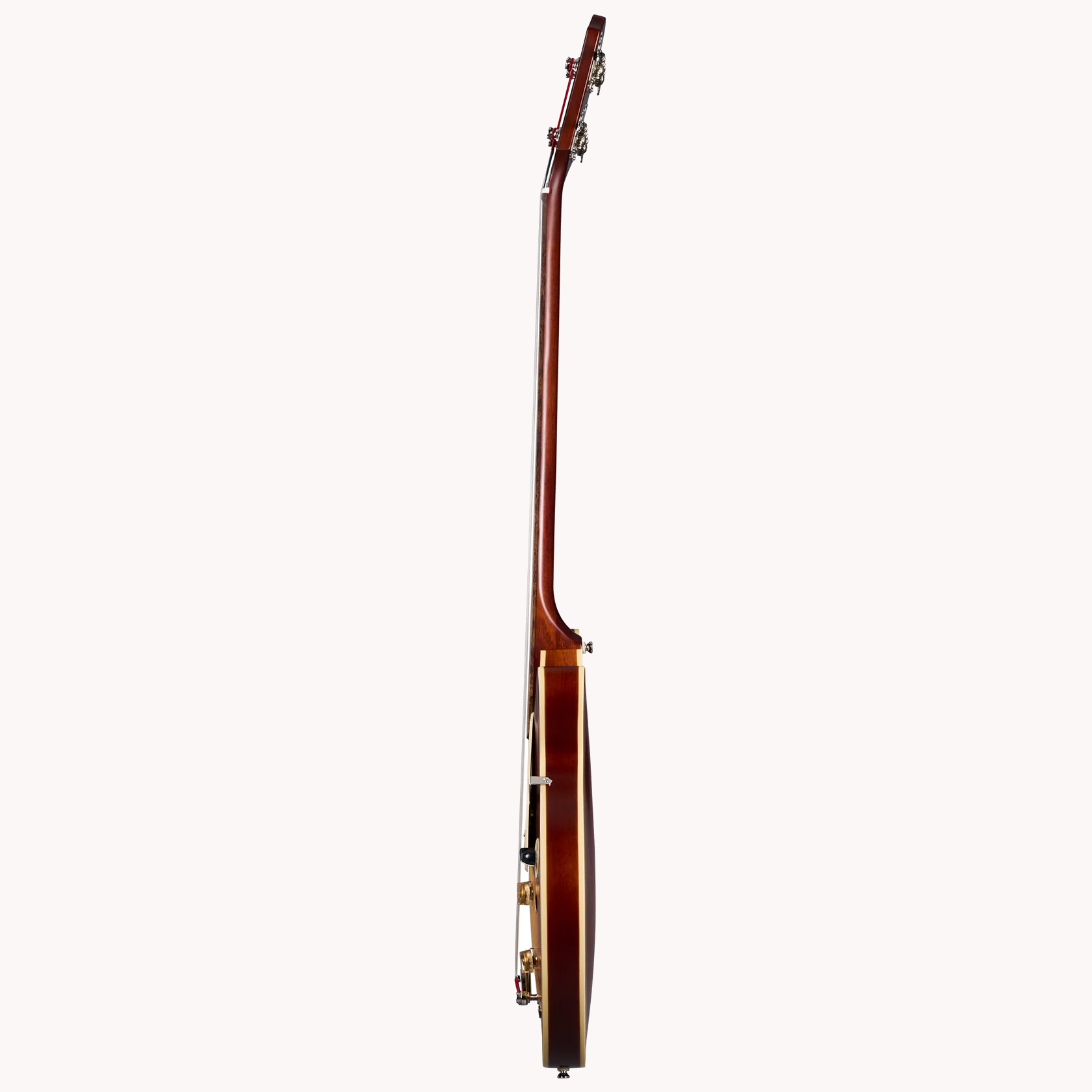 Der Korpus aus geschichtetem Ahorn (layered maple) mit stabilisierendem Center-Block sorgt für ein ausgewogenes Klangbild: warm, körperreich und dennoch brillant artikuliert. Der fette, aber spielerfreundliche Mahagoni-Hals im „C“-Profil liegt angenehm in der Hand—und das glatte Laurel-Griffbrett ohne Bünde macht jedes Glissando zu einem samtigen Erlebnis.
