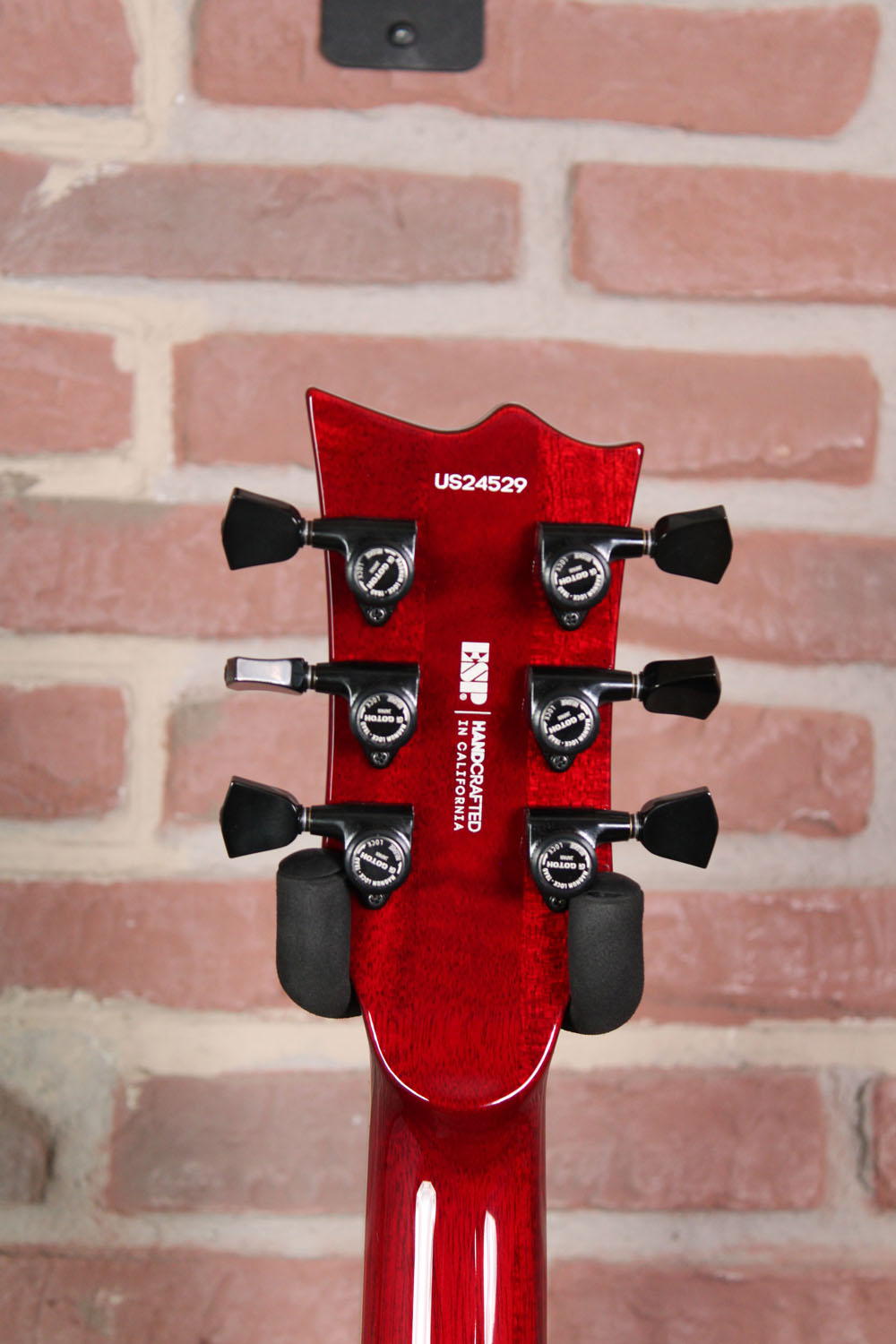 Die Hardware ist kompromisslos auf Stabilität und Präzision ausgelegt: Sperzel Trim-Lok Mechaniken bieten höchste Stimmstabilität, während die TonePros Locking TOM Bridge mit Tailpiece für optimale Schwingungsübertragung sorgt. Schwarze Hardware, Dunlop Straplocks und ein passendes ESP USA Case runden das Gesamtpaket ab.