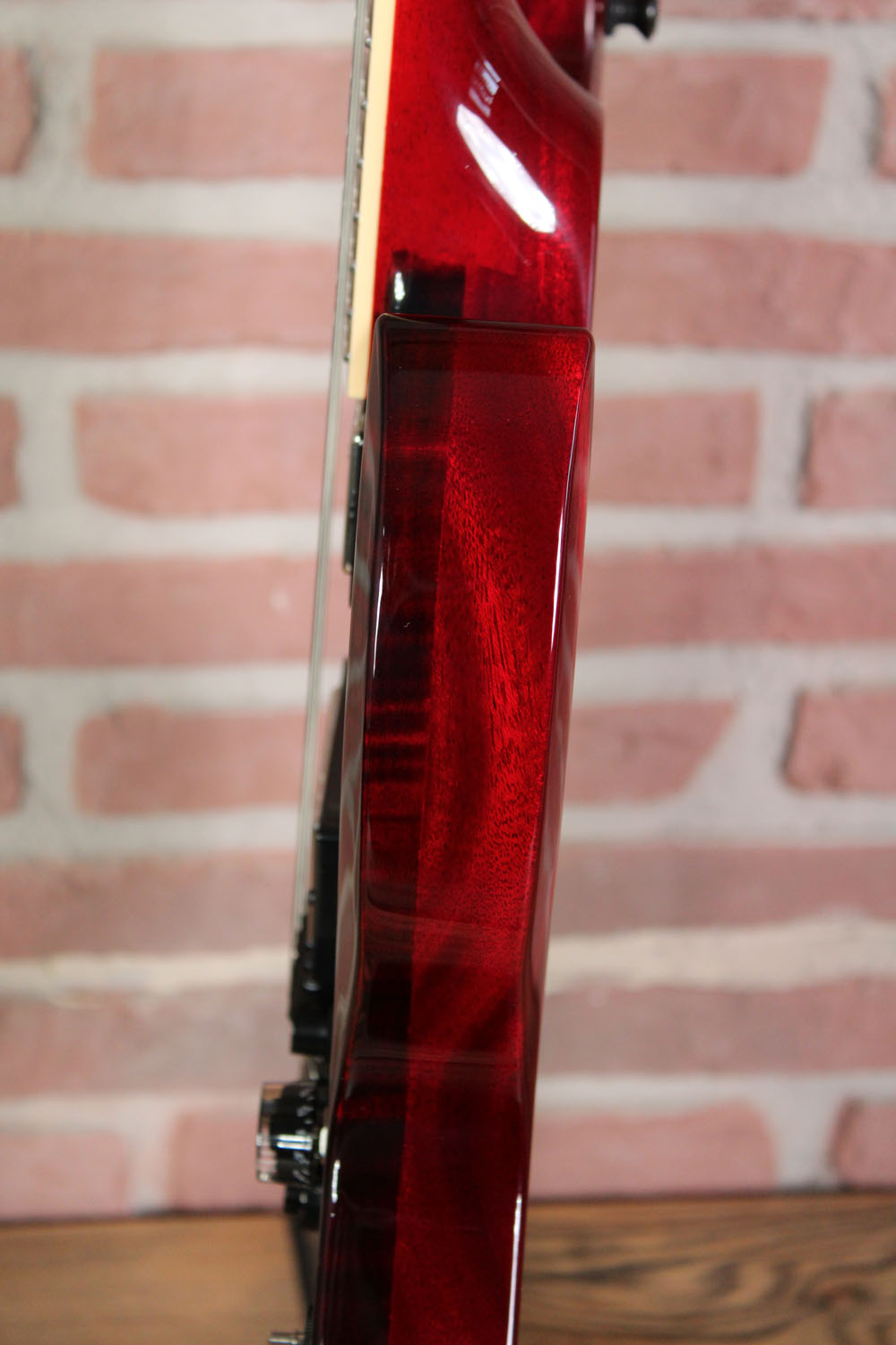 Schon der erste Blick verrät: Diese Viper ist ein Statement. Der Mahagoni-Korpus mit Flamed Maple Top im exklusiven Blood Moon Gloss Finish verleiht der Gitarre einen einzigartigen Charakter, der Eleganz und Aggressivität perfekt kombiniert. Das Set-Thru-Halsdesign aus dreiteiligem Mahagoni sorgt für unvergleichliches Sustain und Spielkomfort. Unterstützt wird dies durch ein Ebenholz-Griffbrett mit 22 Edelstahlbünden (JESCAR FW57110 XJ), die präzises Spielgefühl und Langlebigkeit garantieren.