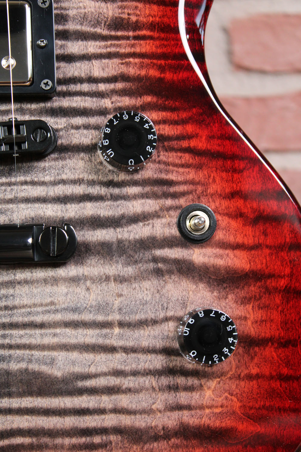 Soundtechnisch ist die ESP USA Viper FM BH Blood Moon eine echte Waffe: Mit dem Seymour Duncan Saturday Night Special Pickup-Set liefert sie warme, dynamische Vintage-Töne mit moderner Durchsetzungskraft – von bluesigen Leads über klassischen Rock bis hin zu härteren Riffs. Die Steuerung bleibt dabei intuitiv mit Volume-, Tone-Regler und 3-Wege-Toggle-Switch.