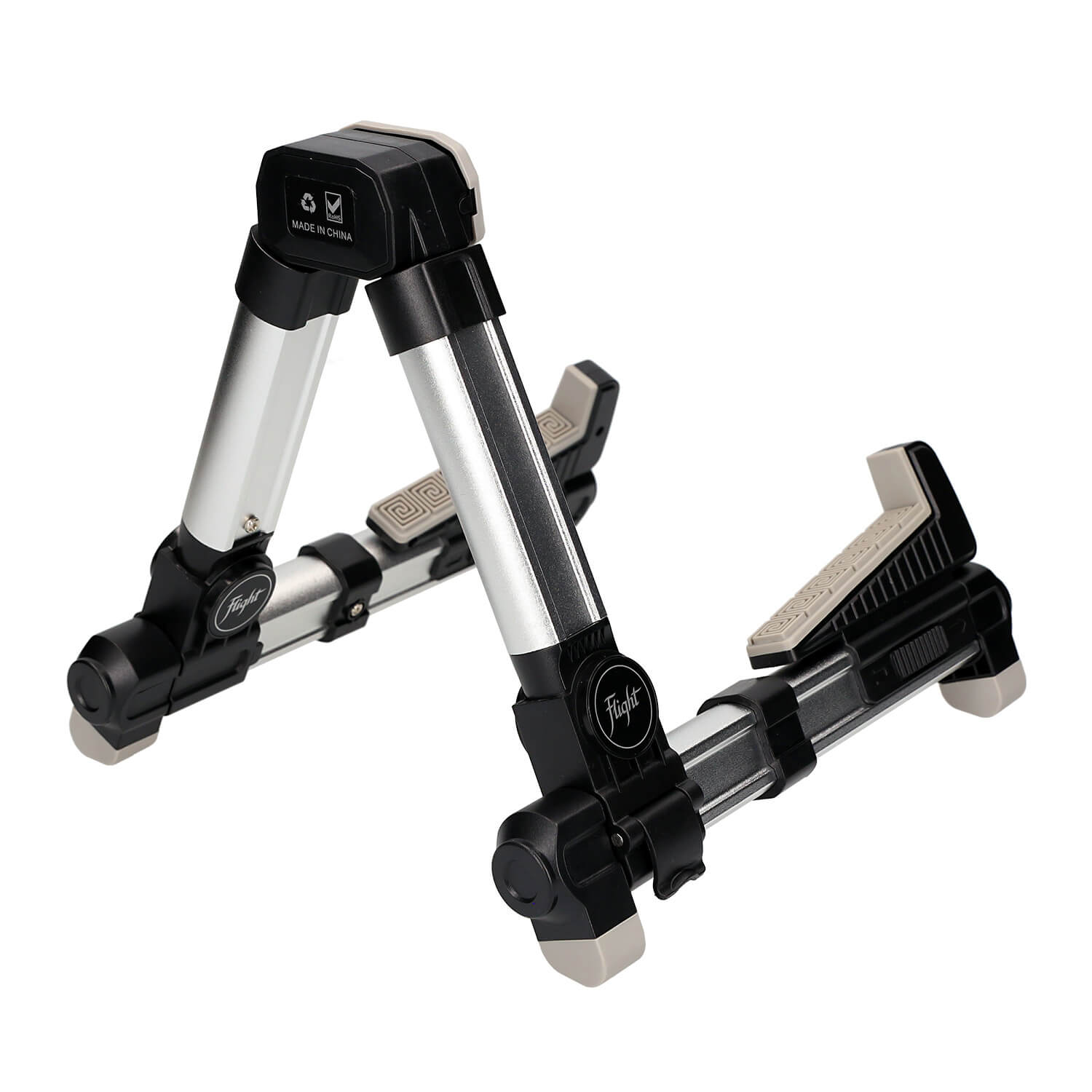 Flight bietet eine wachsende Auswahl an erschwinglichem Ukulele-Zubehör, wie zum Beispiel diesen silbernen Ukulelenständer. Der Ständer ist aus leichtem Aluminium gefertigt und kann für die Reise zusammengeklappt werden. Er ist das perfekte Zubehör, das Sie mitnehmen können, um Ihre Ukulele sicher zu verstauen, wenn Sie eine Pause vom Spielen machen. Die Gummifüße am Ständer verhindern ein Verrutschen, und die Gummipuffer am Ständer halten Ihre Ukulele an ihrem Platz, bis Sie wieder bereit sind zu spielen.