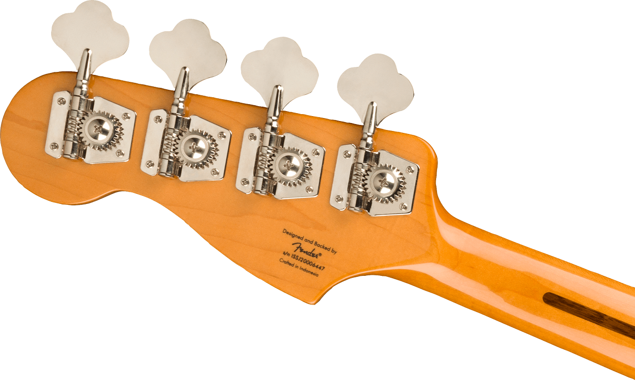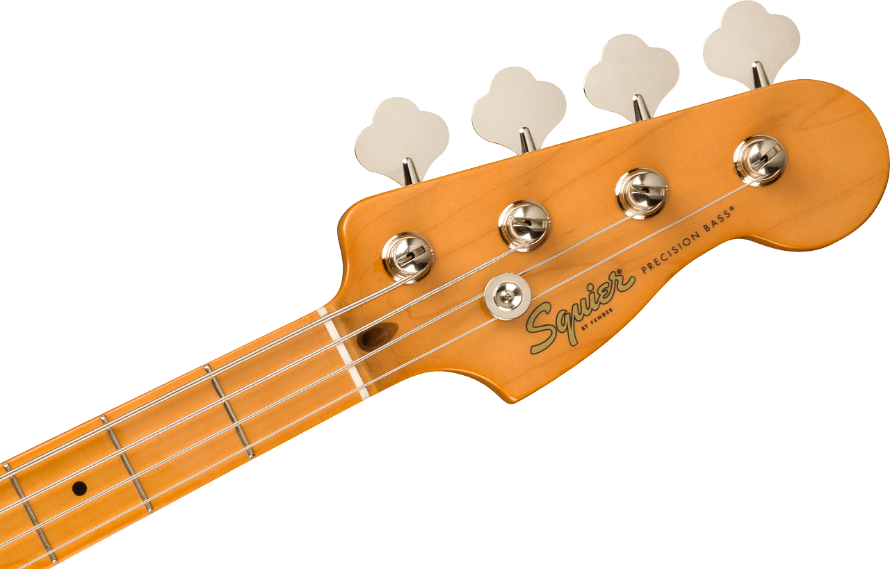Der Classic Vibe Late '50s Precision Bass ist eine Hommage an den aktualisierten P Bass® der späten 1950er Jahre und liefert dank seines von Fender entwickelten Alnico-Split-Singlecoil-Tonabnehmers einen satten Ton. Zu den spielerfreundlichen Merkmalen gehören ein schlankes, komfortables "C"-förmiges Halsprofil mit einem leicht zu spielenden 9,5"-Radius-Griffbrett und schmalen Bünden sowie eine Brücke im Vintage-Stil mit Gewindesätteln. Dieses Squier Modell ist mit Kopfplattenmarkierungen im Stil der 1950er Jahre, reichhaltig vernickelter Hardware und einer glatten, glänzenden Halslackierung im Vintage-Stil ausgestattet, die einen Hauch von Old-School vermittelt.