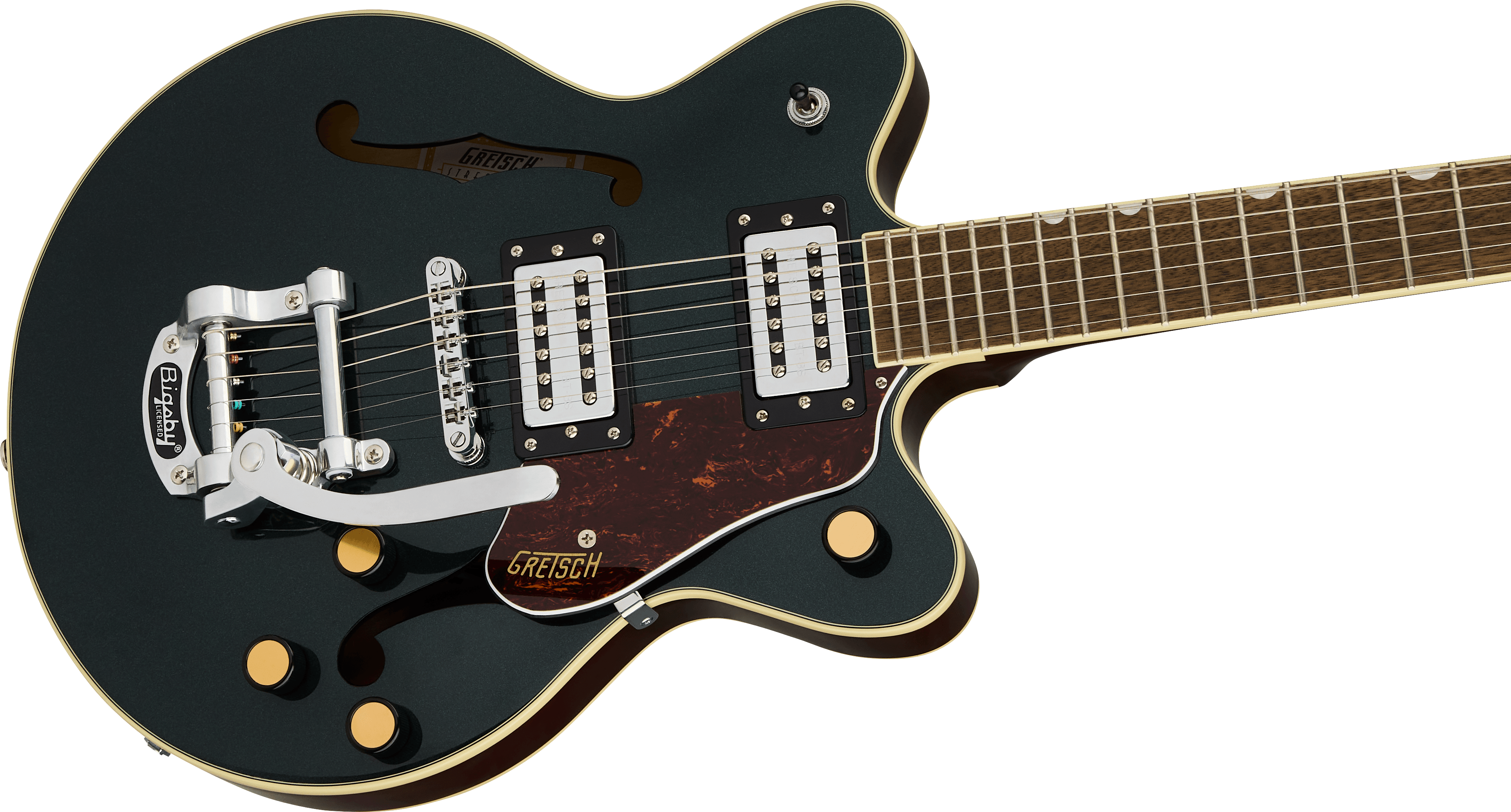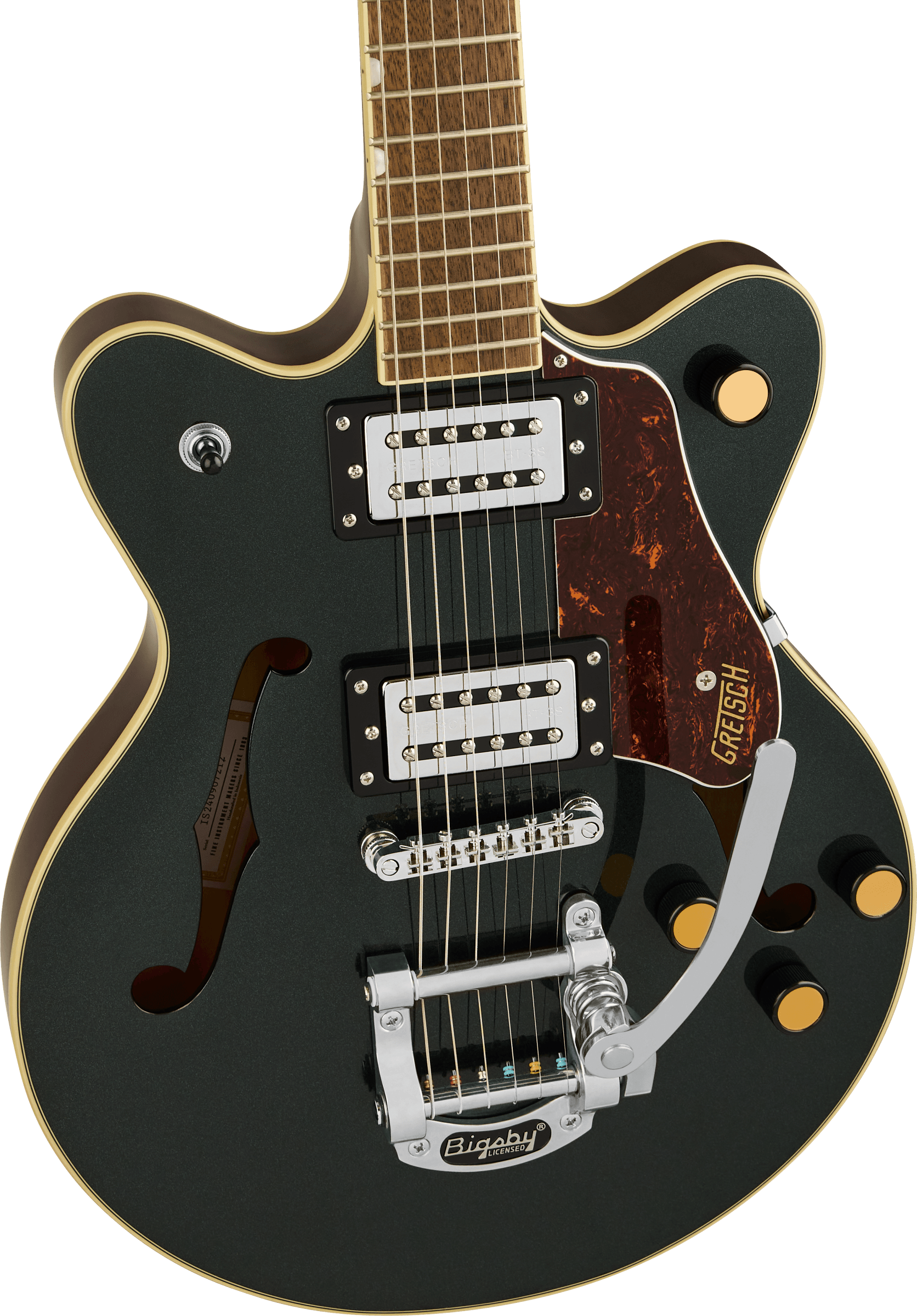 Die G2655T Streamliner™ Center Block Jr. Double-Cut mit Bigsby® stößt in die moderne Ära mit kraftvollem Sound und Stil in einem kleineren Paket vor. Die schlanke G2655T wurde für Gitarristen entwickelt, die mehr als das Alltägliche von einem Instrument erwarten - mehr Leistung, mehr Stil und vor allem mehr Lautstärke - und dabei alles beibehalten, was Sie von einer Gretsch erwarten.