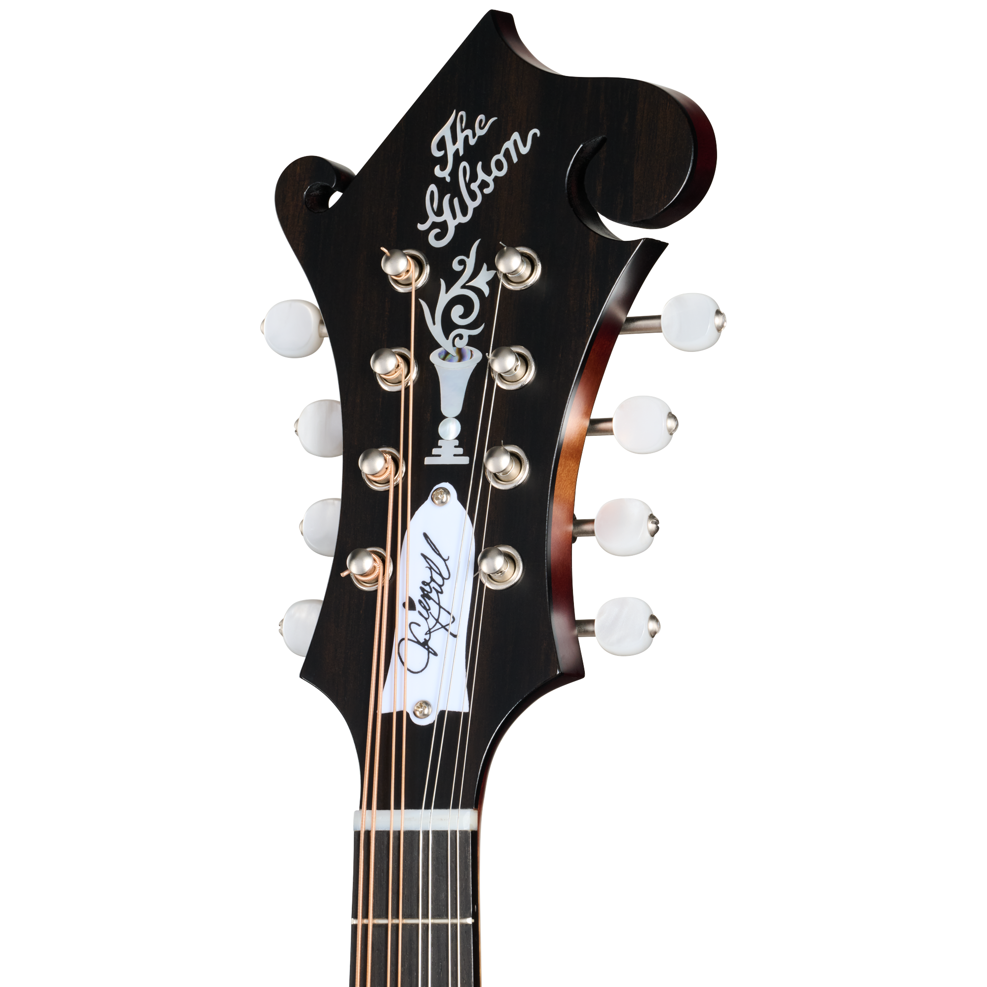 Die Oberfläche ist mit einem VOS-Handlack im exklusiven Sierra Burst Finish versehen – ein edler Look mit subtiler Vintage-Anmutung, erstmals auf der F‑5G-Plattform eingesetzt. Komplettiert wird das Instrument durch hochwertige Nickel-Hardware, ein Ebenholzsteg, Grover-Mechaniken und ein graviertes Tailpiece mit „The Gibson“-Schriftzug und Sierra Hulls Initialen.