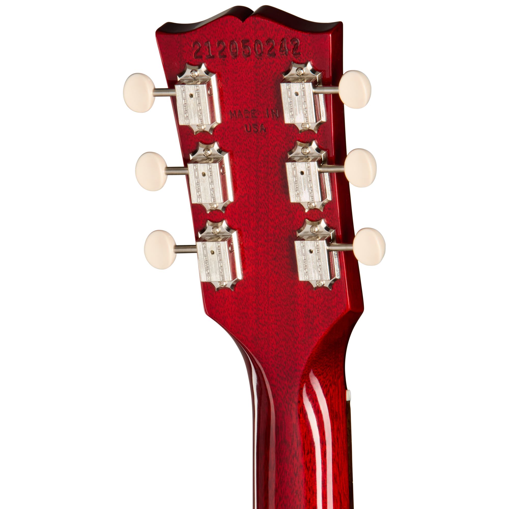 Der massive Mahagoni-Slab-Body mit Double Cutaway bietet mühelosen Zugriff auf alle 22 Bünde – perfekt für Solisten. Der SlimTaper™-Hals aus Mahagoni liegt angenehm in der Hand, während das Palisandergriffbrett ein geschmeidiges Spielgefühl ermöglicht. Das Vintage Cherry Finish unterstreicht den klassischen Gibson-Look mit edler Ausstrahlung.