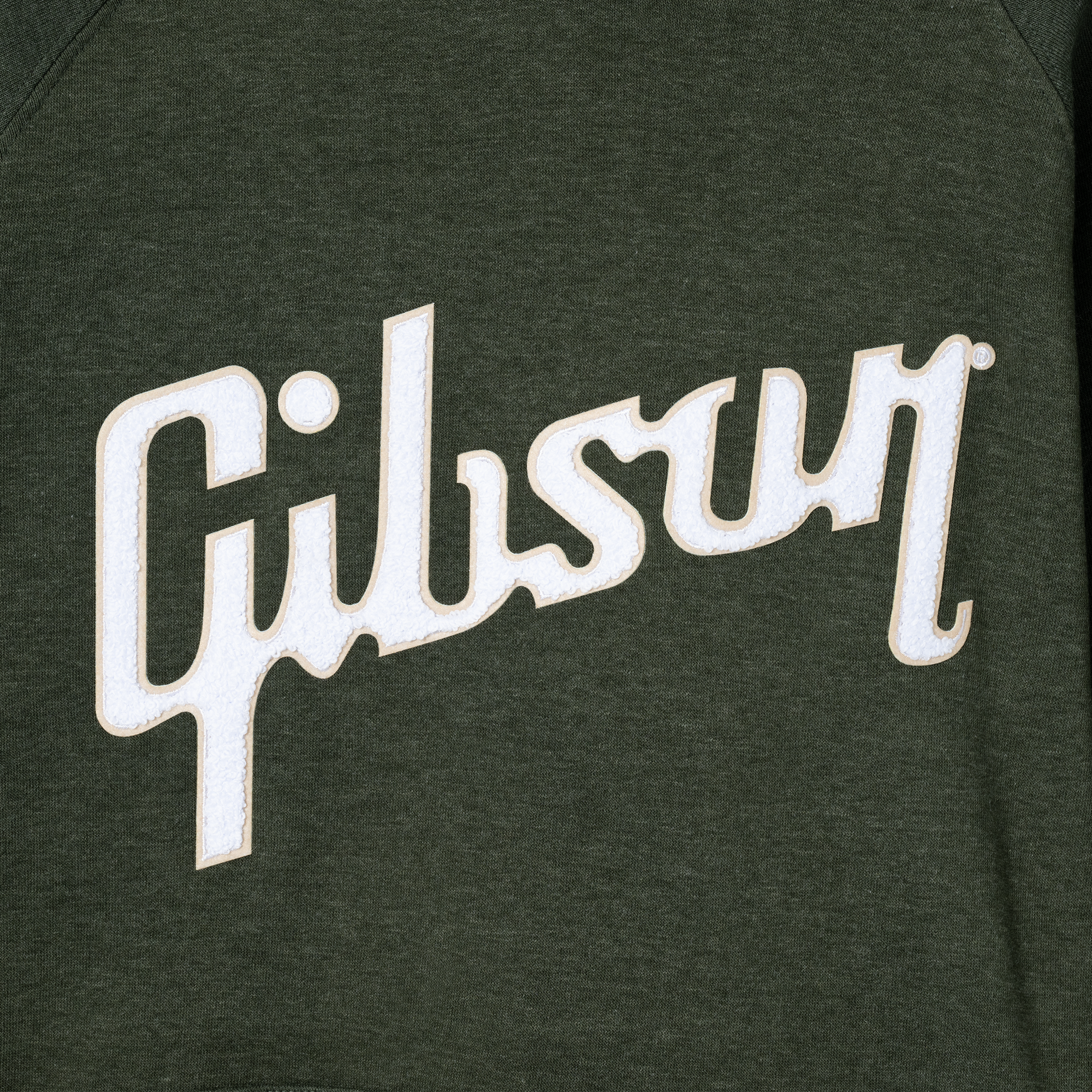 Dieser ultraweiche Kapuzenpullover in Heather Green verfügt über einen Chenille-Logoaufnäher mitten auf der Brust.