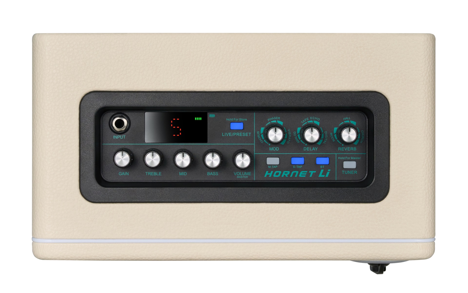 Der Hornet 15 Li ist MOOERs neuester Preamp-Modeling-Verstärker, der 15 Watt Leistung, einen 4000-mAh-Akku und 9 klassische Preamp-Emulationen in einem Gerät vereint. Modulations-, Delay- und Reverb-Effekte sind ebenso integriert wie Tap-Tempo-Funktionalität und Dynamik- und EQ-Einstellregler, die alle im Preset-Modus des Verstärkers gespeichert werden können. Ein eingebautes Stimmgerät und ein Bluetooth-Eingang sind ebenfalls vorhanden, was beweist, dass dieser Verstärker mit Blick auf Benutzerfreundlichkeit und Portabilität entwickelt wurde und Gitarristen auf der ganzen Welt die Möglichkeit bietet, unterwegs zu üben und zu proben.