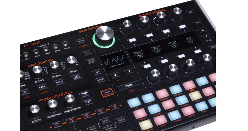 ASM hat natürlich auch an den Live-Einsatz gedacht: 8 hochauflösende Encoder inklusive LED-Ringen können frei auf gewünschte Parameter gerouted und live verändert werden. OLED Displays sorgen für eine perfekte Ablesbarkeit. Neben 2 Bänken mit insgesamt 256 Presets stehen 3 weitere Bänke mit je 128 Patches zum speichern eigener Sounds zur Verfügung.