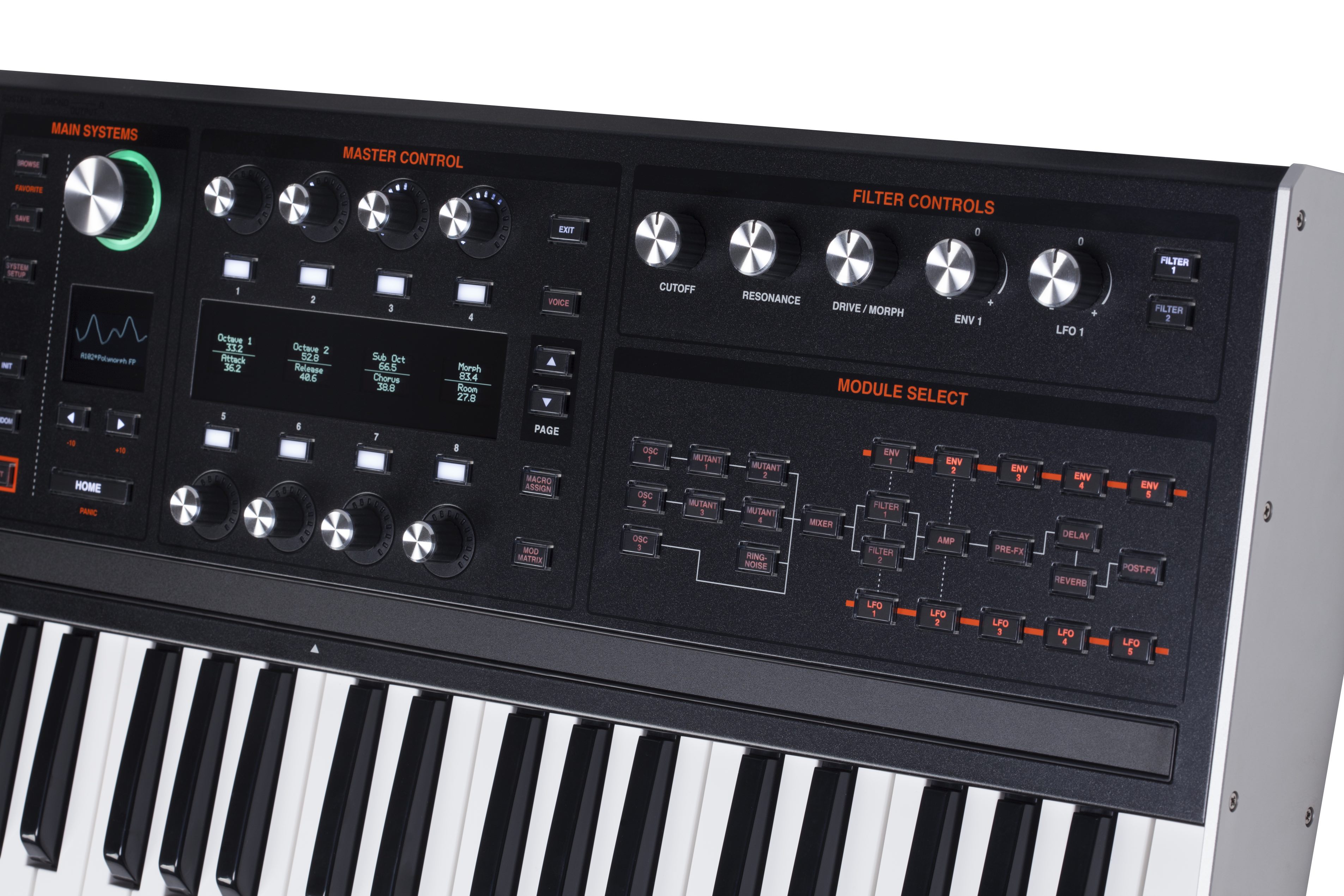 HYDRASYNTH ist DER Dream-Synth sowohl für Sound Designer als auch für Musiker. Seine Klangerzeugung ist auf maximale Flexibilität ausgelegt. Gleichzeitig wurde die Benutzeroberfläche für minimales Paging und einen intuitiven Workflow optimiert. Der außergewöhnlich robust verarbeitete Synthesizer verfügt über 3 Oszillatoren mit der fortschrittlichen „Wave Morphing Synthesis“-Engine, die auf einen Pool von 219 Wellenformen zugreifen kann. Als Besonderheit beherrschen Oszillator 1 und 2 WaveScanning, bei dem zwischen bis zu 8 Wellenformen übergeblendet bzw. „gemorphed“ werden kann. Über insgesamt vier Mutanten (Mutators) lassen sich die Oszillatorsignale weiter verformen, dazu gehören FM, drei verschiedene Arten von Pulsweitenmodulation (PWM), Hard-Sync, Harmonic-Sweep und Wavestack, das fünf gegeneinander verstimmbare Kopien des Oszillators für ultrafette und weite Sounds erzeugt – Die klanglichen Möglichkeiten sind nahezu unbegrenzt.