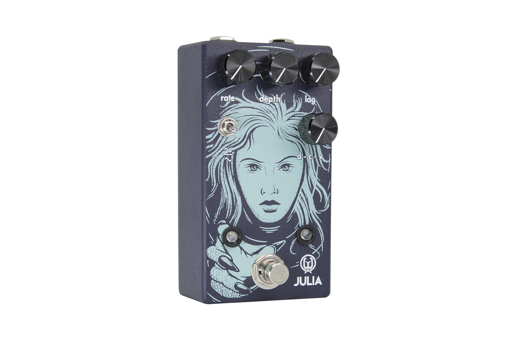 Das Herzstück ist der einzigartige D-C-V-Regler, der eine stufenlose Mischung zwischen Dry, Chorus und Vibrato erlaubt – ganz ohne Umschalten. So entstehen unzählige Nuancen zwischen traditionellem Modulationseffekt und experimentellen Texturen. Der Lag-Regler definiert die Modulationsbasiszeit und verleiht Julia einen charakteristischen Tiefgang – von engen, sauberen Wellen bis hin zu intensiven, „seasick“-artigen Schwebungen. Drei wählbare LFO-Wellenformen sorgen für zusätzliche Flexibilität und machen dieses Pedal zum kreativen Zentrum auf jedem Board.