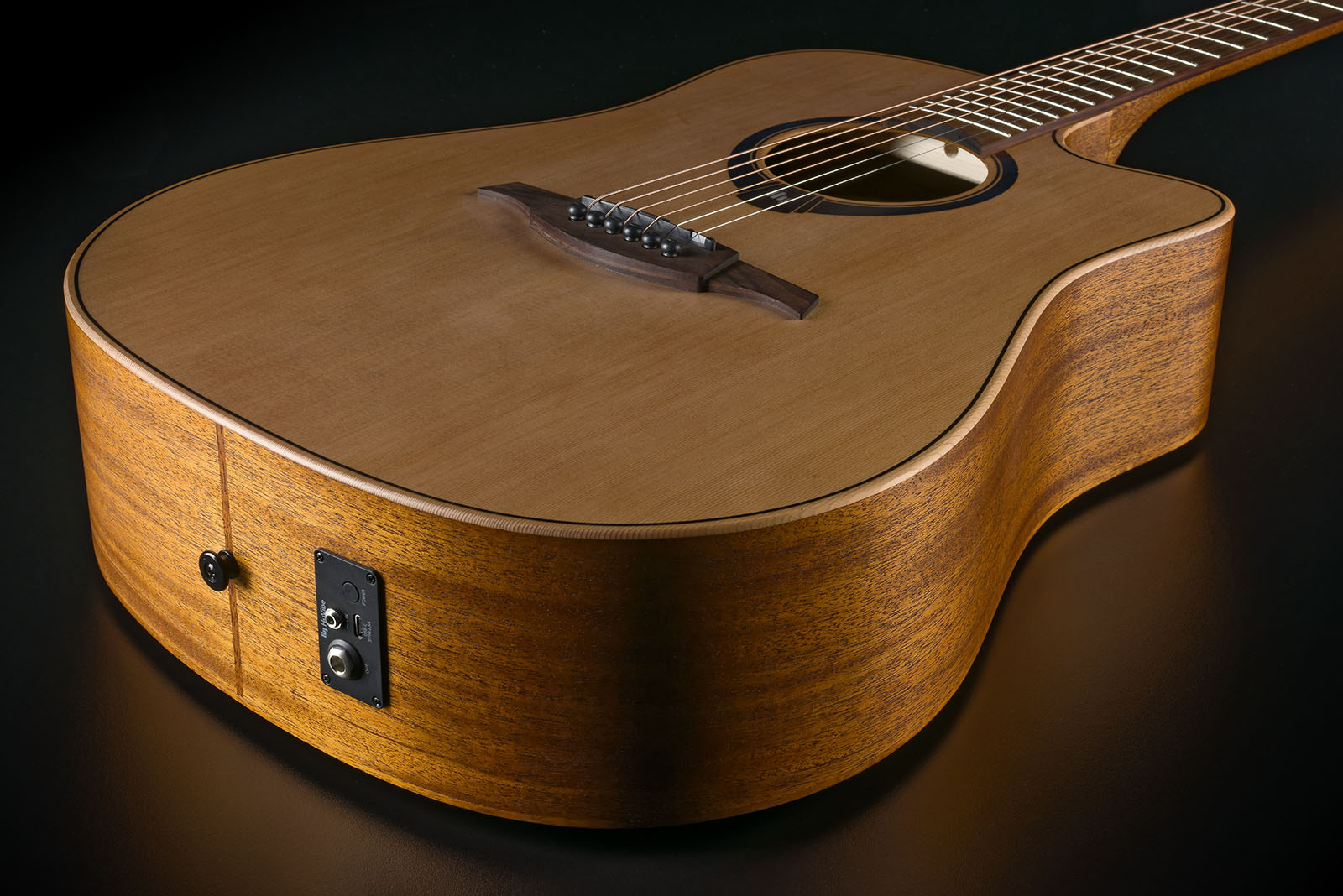 Die Lâg HV10DCE ist mehr als nur eine akustische Gitarre – sie ist ein kreatives Werkzeug für moderne Musikerinnen und Musiker, die keine Kompromisse eingehen. Mit ihrer massiven Zederndecke liefert sie einen warmen, direkten Klang mit ausgeprägtem Mittenbereich, ideal für Singer-Songwriter, Solo-Performances und Studioaufnahmen. Die Dreadnought-Form sorgt für ein kraftvolles Fundament, während der Cutaway den Zugang zu hohen Lagen erleichtert – perfekt für Solospiel und komplexe Akkorde.