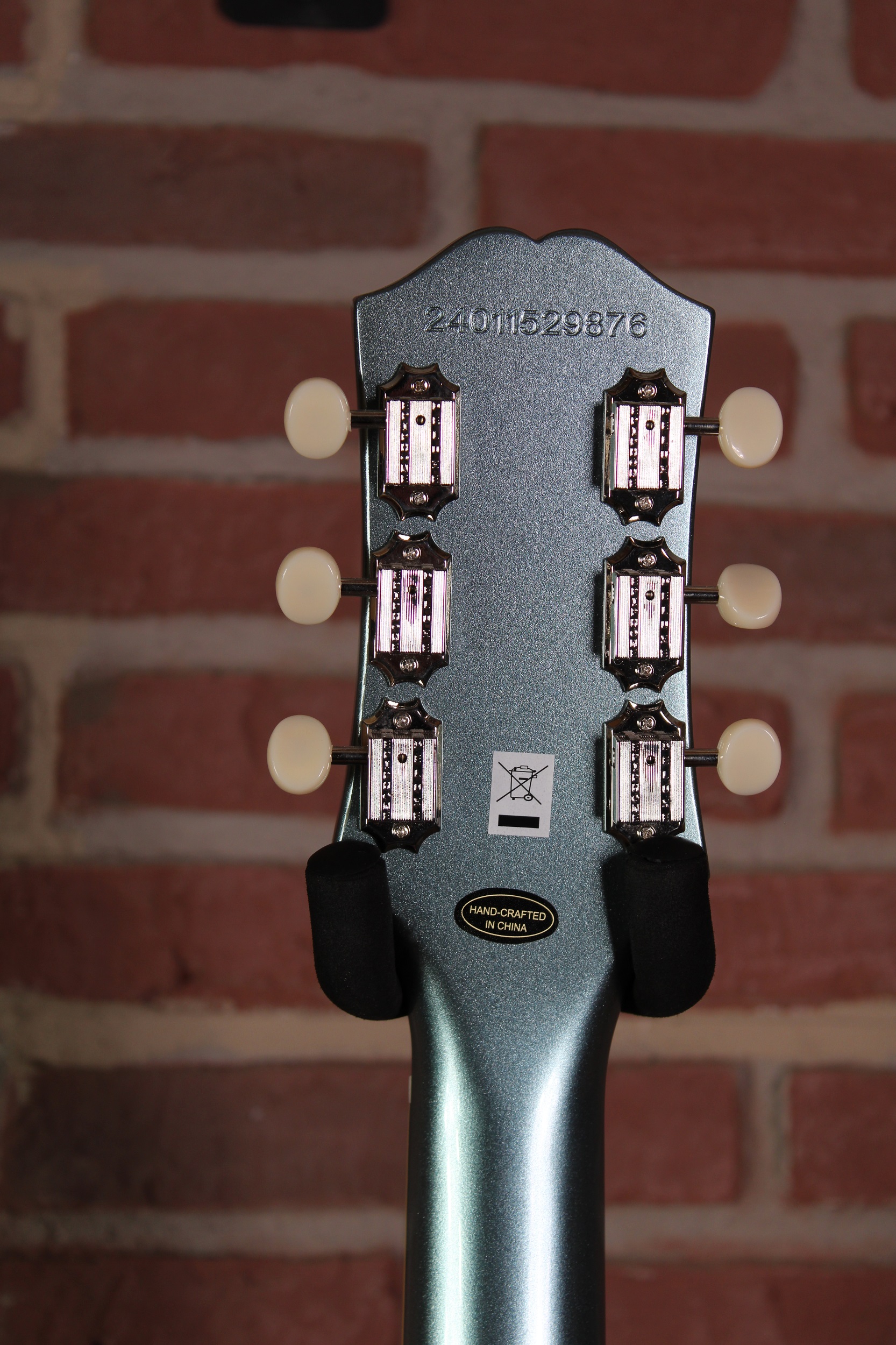 Das Lorbeer-Griffbrett mit 22 Bünden und einer klassischen Mensur von 628,65 mm sorgt für komfortables Spielgefühl und gute Kontrolle in allen Lagen – ideal für Rhythmusparts genauso wie für Leads. Die beiden Epiphone PRO P-90 Singlecoil-Pickups am Hals und an der Brücke liefern einen durchsetzungsstarken, rotzigen Ton mit Vintage-Flair – perfekt für Blues, Garage Rock, Indie oder Classic Rock. In Sachen Hardware setzt Epiphone auf Zuverlässigkeit: Die kompensierte Lightning Bar Wrap Around Brücke vereint authentischen Look mit moderner Intonation, und die Nickel-Hardware rundet das Gesamtbild stilvoll ab.