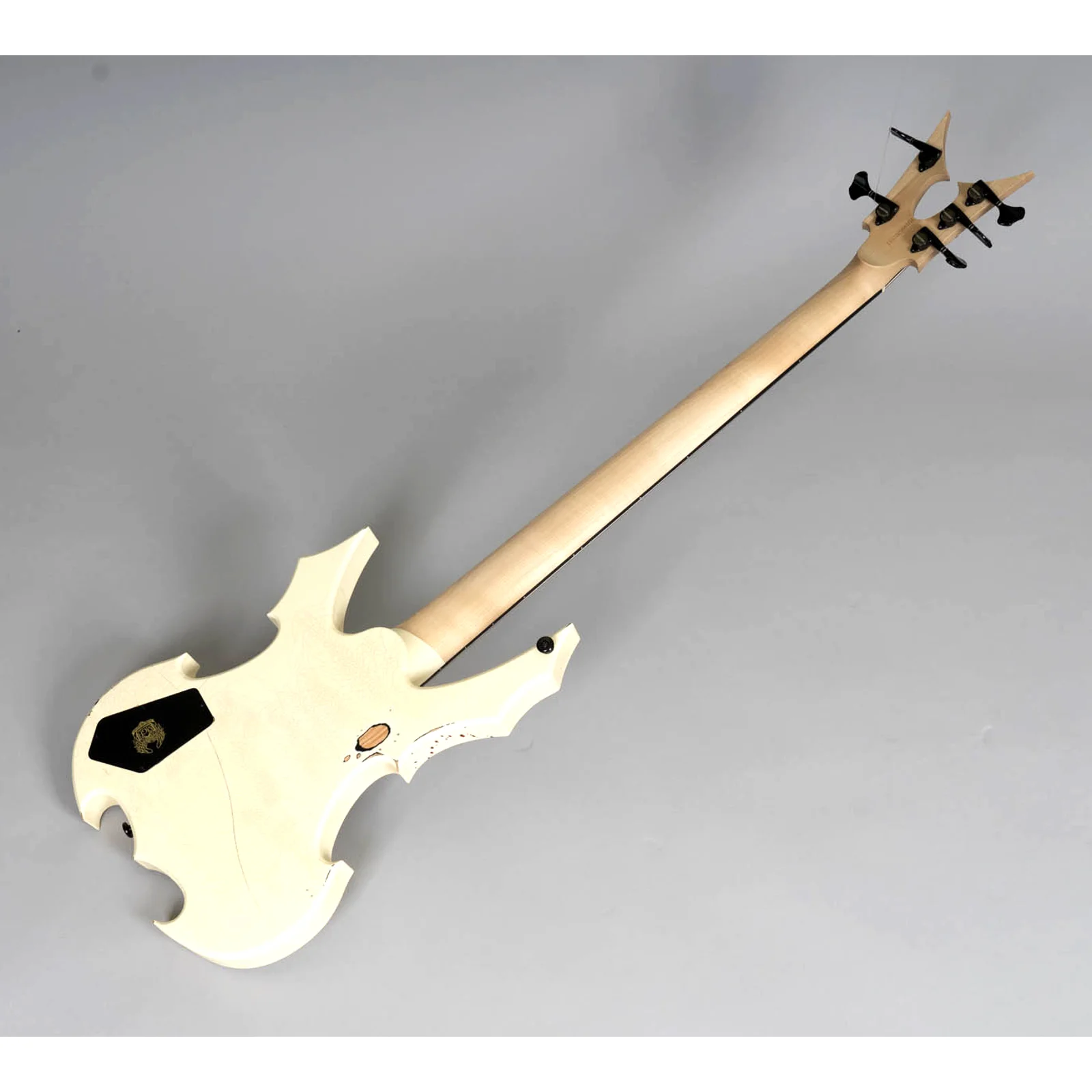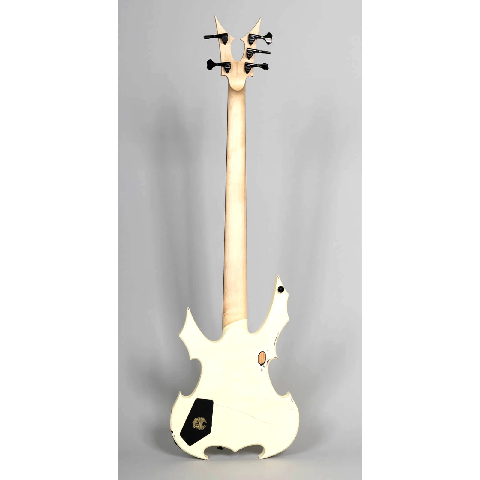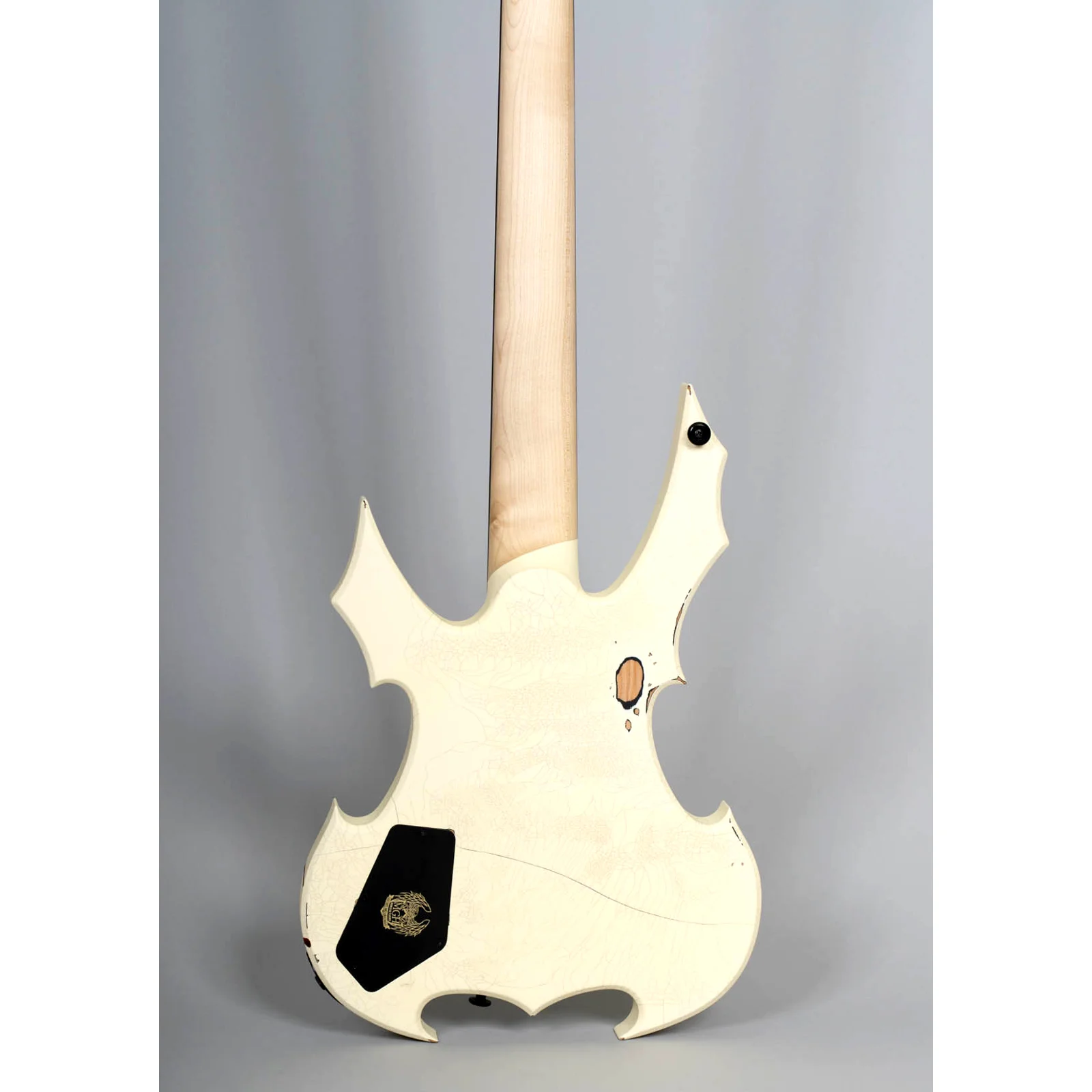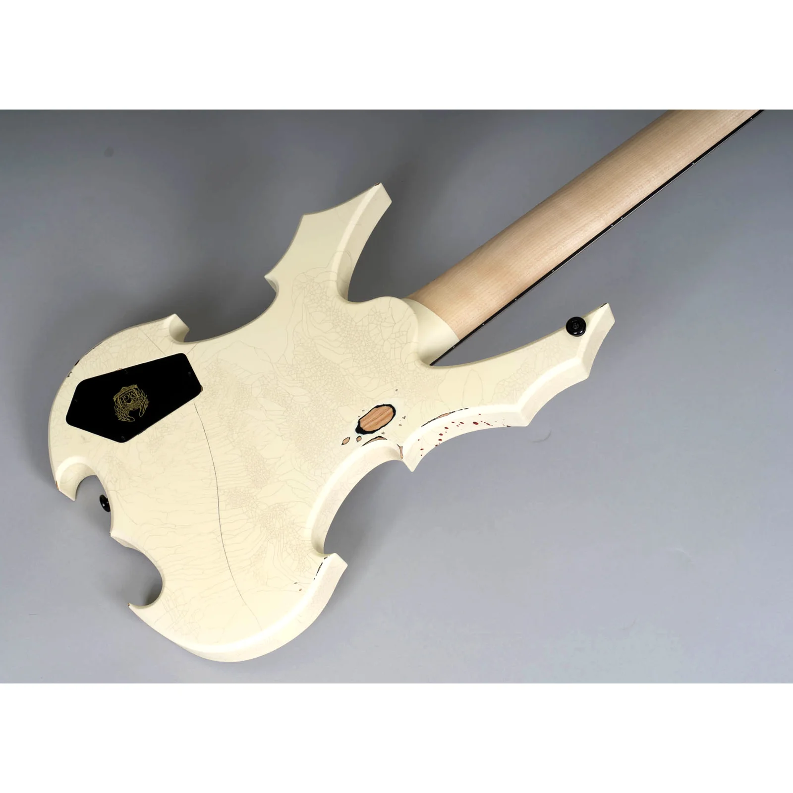 Der MGH Guitars Protector Bass 5 verbindet kompromissloses Metal-Design mit professioneller Performance: Skulpturaler Korpus, Cracked-White Finish mit Blood-Splatter und ein druckvoller MMHB5 Bridge-Humbucker liefern Präsenz, Punch und präzises Low-End – live wie im Studio.