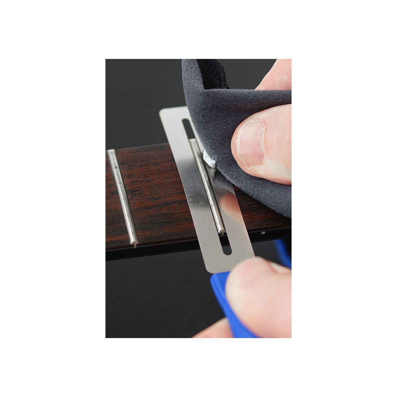 Saubere, glatte Bünde erleichtern nicht nur Bending und Vibrato, sondern verlängern auch die Lebensdauer der Saiten (oxidierte, schmutzige Bünde verursachen mehr Saitenschäden, als man vielleicht denkt). Das revolutionäre FRINE Fret Polish (MN104) von MusicNomad enthält mikrofeine Poliermittel, die Oxidation, Schmutz und Öl sicher und schnell von den Bünden entfernen. Mit FRINE Fret Polish lassen sich Glätte und Glanz der Bünde ohne umständliche Behandlung mit kratziger Stahlwolle oder aggressiven Reinigungsmitteln wiederherstellen.