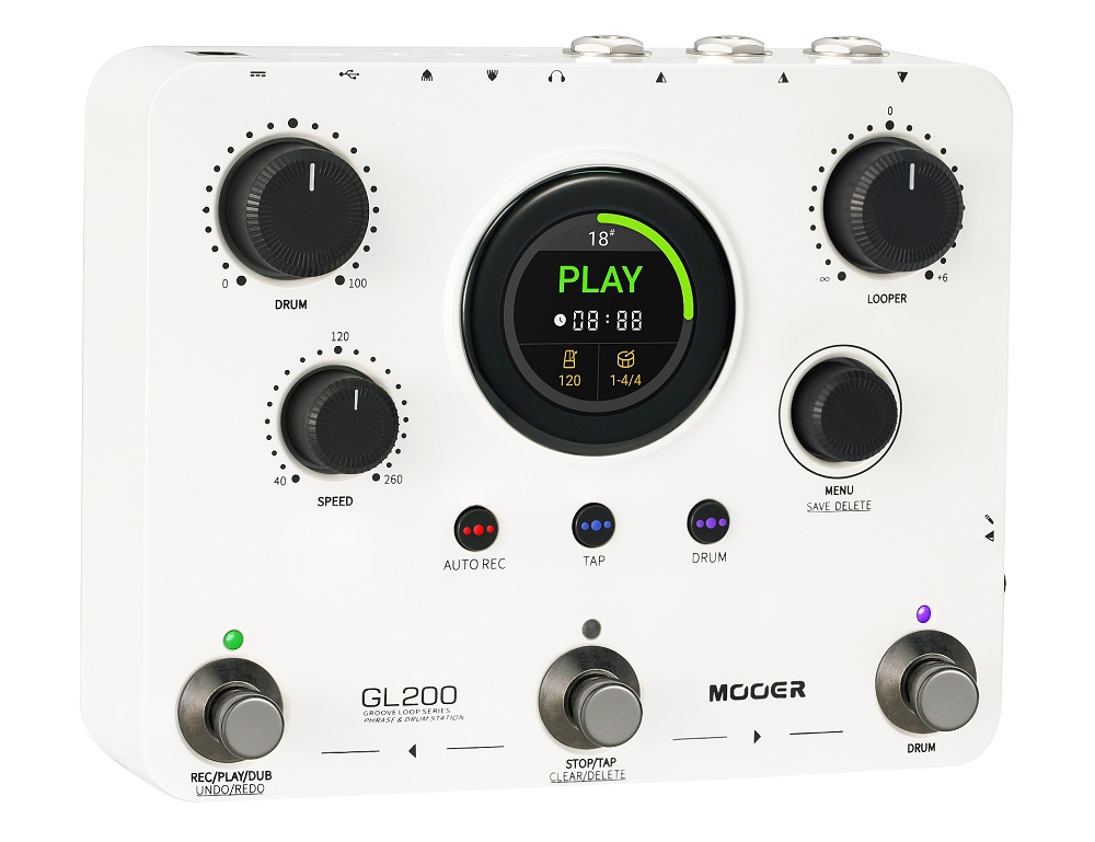 Das neue GL200 verfügt außerdem über einen symmetrischen Mikrofon- / Line-Level Eingang mit integriertem, regelbaren Mikrofonvorverstärker und 48 V Phantomspeisung. Bluetooth-Audio kann nun über den GL200 abgespielt und in Loop-Aufnahmen eingebunden werden. Mit Hilfe einer computerbasierten Verwaltungssoftware können Anwender ihre eigenen Drum-Kits und MIDI-Rhythmen definieren und importieren. Die maximale Aufnahmezeit wurde auf 800 Minuten erhöht. Beliebte GL100-Funktionen wie Auto-Record, Time-Stretch, automatisches Drum-Matching und die intuitive Touchscreen-Steuerung wurden im GL200 beibehalten und verfeinert.