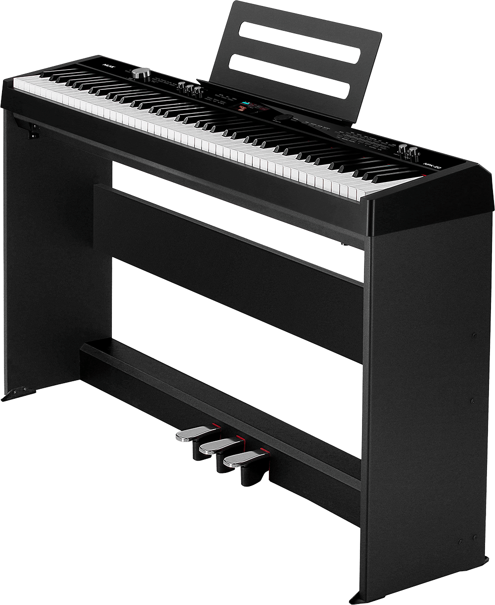 - Dreifach skalierte, gewichtete Hammermechanik-Tastatur (mit Druckpunktsimulation und Tasten aus synthetischem Ebenholz/Elfenbein)
