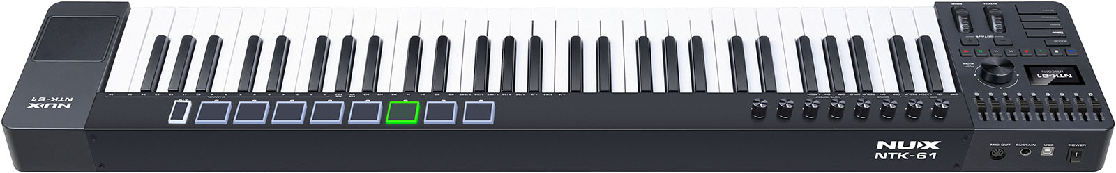 Dank automatischer DAW-Erkennung und mitgeliefertem Cubase LE bist du sofort startklar. 8 Drehregler, 9 Fader, Transportsektion und 16 anschlagdynamische RGB-Pads machen den NTK-61 zu einem echten Steuerzentrum für moderne Musikproduktion. Ob Studio, Bühne oder Homerecording – dieser Controller bietet alles, was du brauchst, um Ideen mühelos in professionelle Tracks zu verwandeln.