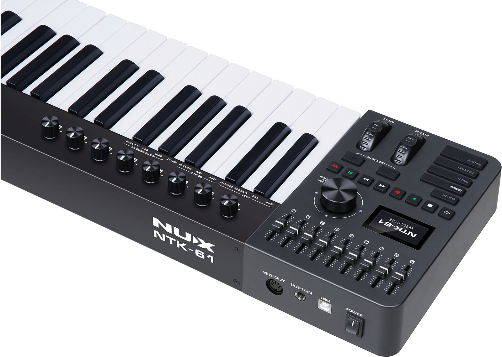 Der Nux NTK-61 ist nicht einfach nur ein MIDI-Controller – er ist dein kreatives Zentrum. Mit seinen 61 halbgewichteten Tasten inklusive Aftertouch eröffnet er eine neue Dimension ausdrucksstarken Spiels. Jeder Tastendruck überträgt Emotion und Präzision, egal ob du komplexe Harmonien einspielst oder rhythmische Patterns entwickelst.