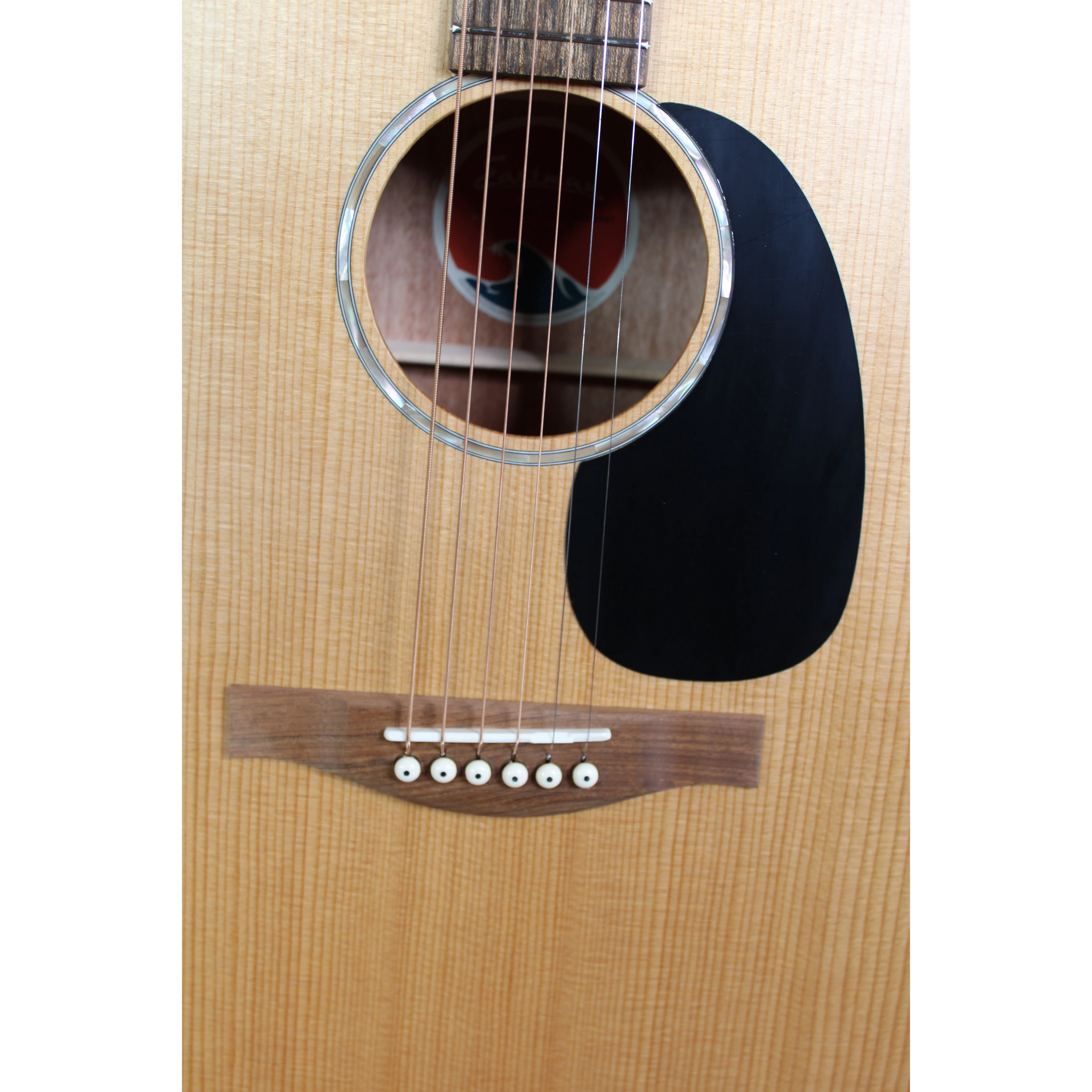 Mit den D'Addario XS Coated Phosphor Bronze Saiten (Größe .012 - .053) erhält die Gitarre einen klaren, langanhaltenden Klang. Das Natural Finish verleiht der Gitarre eine edle Optik, die ihren zeitlosen Charakter unterstreicht. Im Lieferumfang ist ein gepolstertes Eastman Gigbag enthalten, das einen sicheren Transport und Schutz für die Gitarre garantiert.