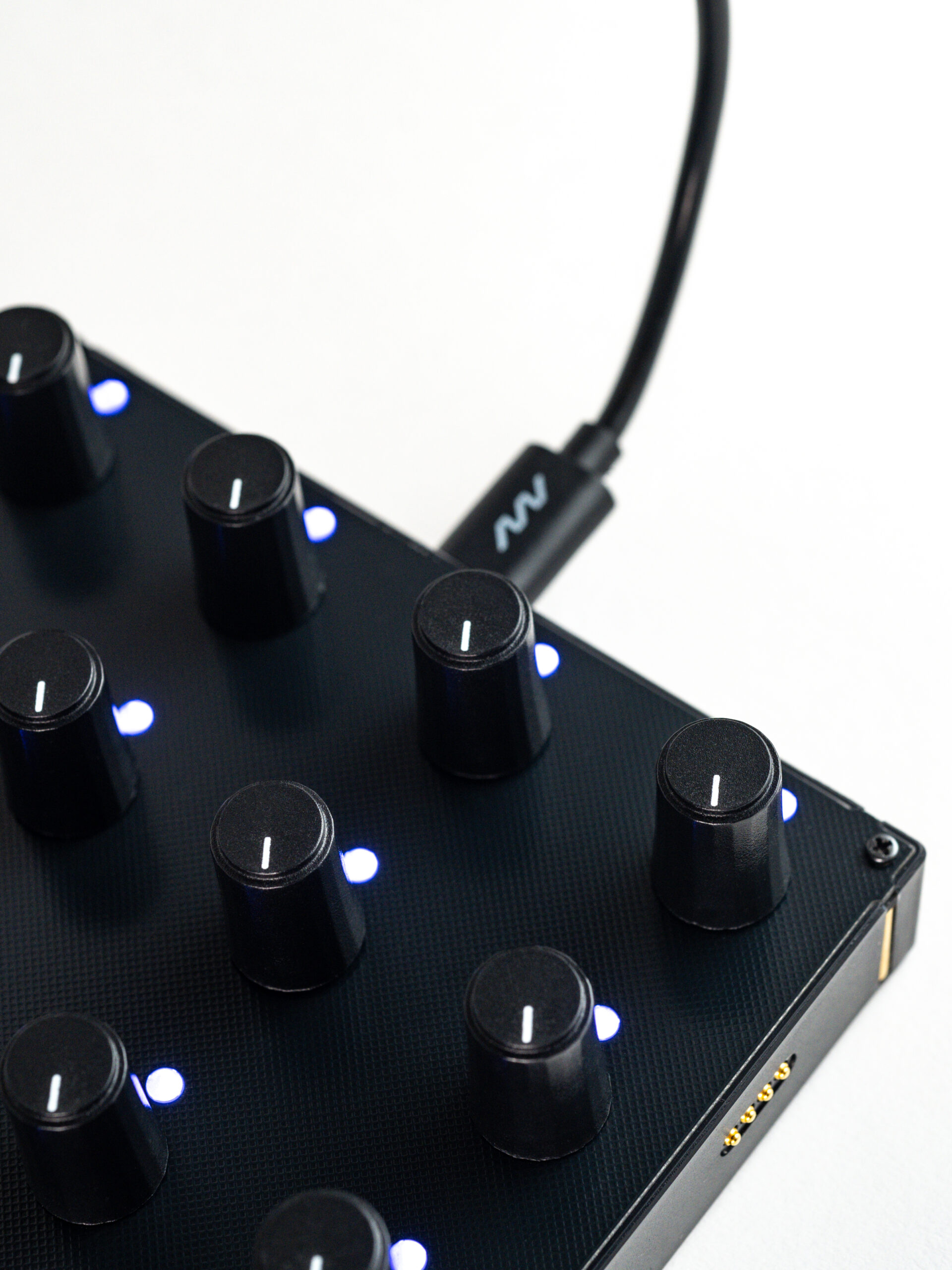 Das PO16 ist ein schlankes, kompaktes Drehpotentiometer-Modul mit einfachem Drehweg, das jetzt mit Potentiometern mit Metallachse ausgestattet ist. Es eignet sich ideal zur Steuerung schneller Bewegungsänderungen, etwa bei EQs, Filtern oder Synthesizer-Parametern, die im One-Knob-per-Function-Stil zugewiesen sind. Ausgestattet mit anpassbaren, mehrfarbigen LEDs ermöglicht das Modul eine klare Beschriftung auch in dunklen Umgebungen. Die Unterscheidung der einzelnen Bedienelemente wird durch Farbänderungen der LED-Anzeigen, individuelle Helligkeitseinstellungen oder pulsierende Animationen erleichtert.