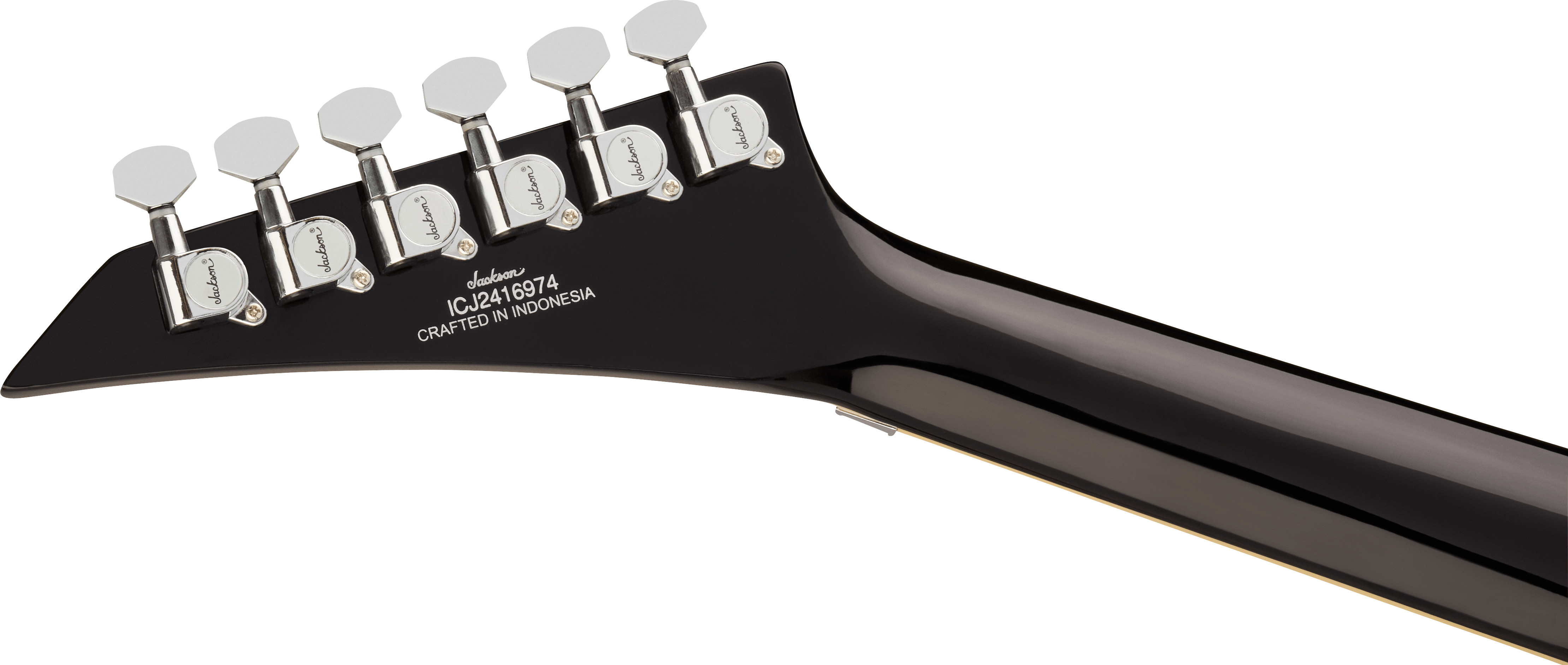Auf dem WR1A Body aus einlagigem Poplar mit Binding thront ein geschraubter dreiteiliger Ahornhals mit Graphitverstärkung. Das Ebenholz-Griffbrett verläuft im Compound Radius, so spielt es sich nicht nur geschmeidig, es bietet auch auf ganzer Länge viel Platz für geniale Soli. Stilechte Jackson „Sharkfin” Inlays erleichtern dir die Orientierung.