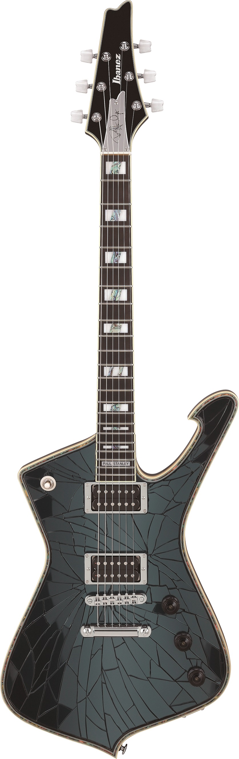 Limitierte Paul Stanley Signature Gitarre mit Seymour Duncan Tonabnehmern und der "Cracked Mirror" Decke mit Acryl Teilen, reproduziert per Hand von Japanischen Gitarrenbauern