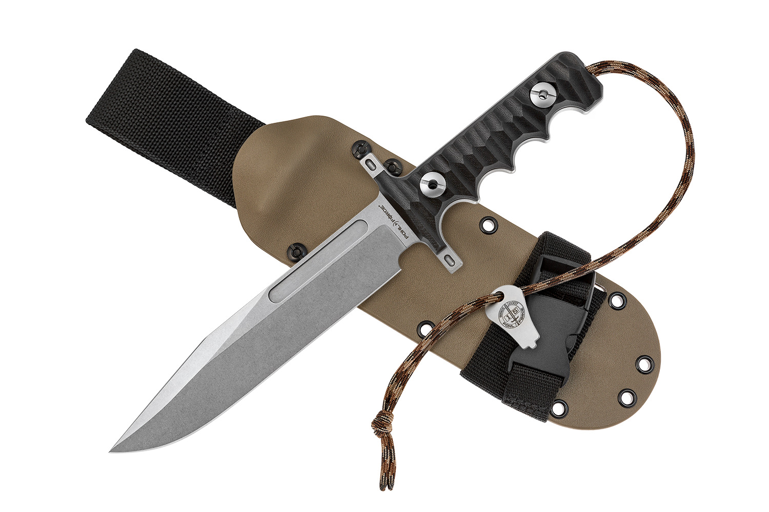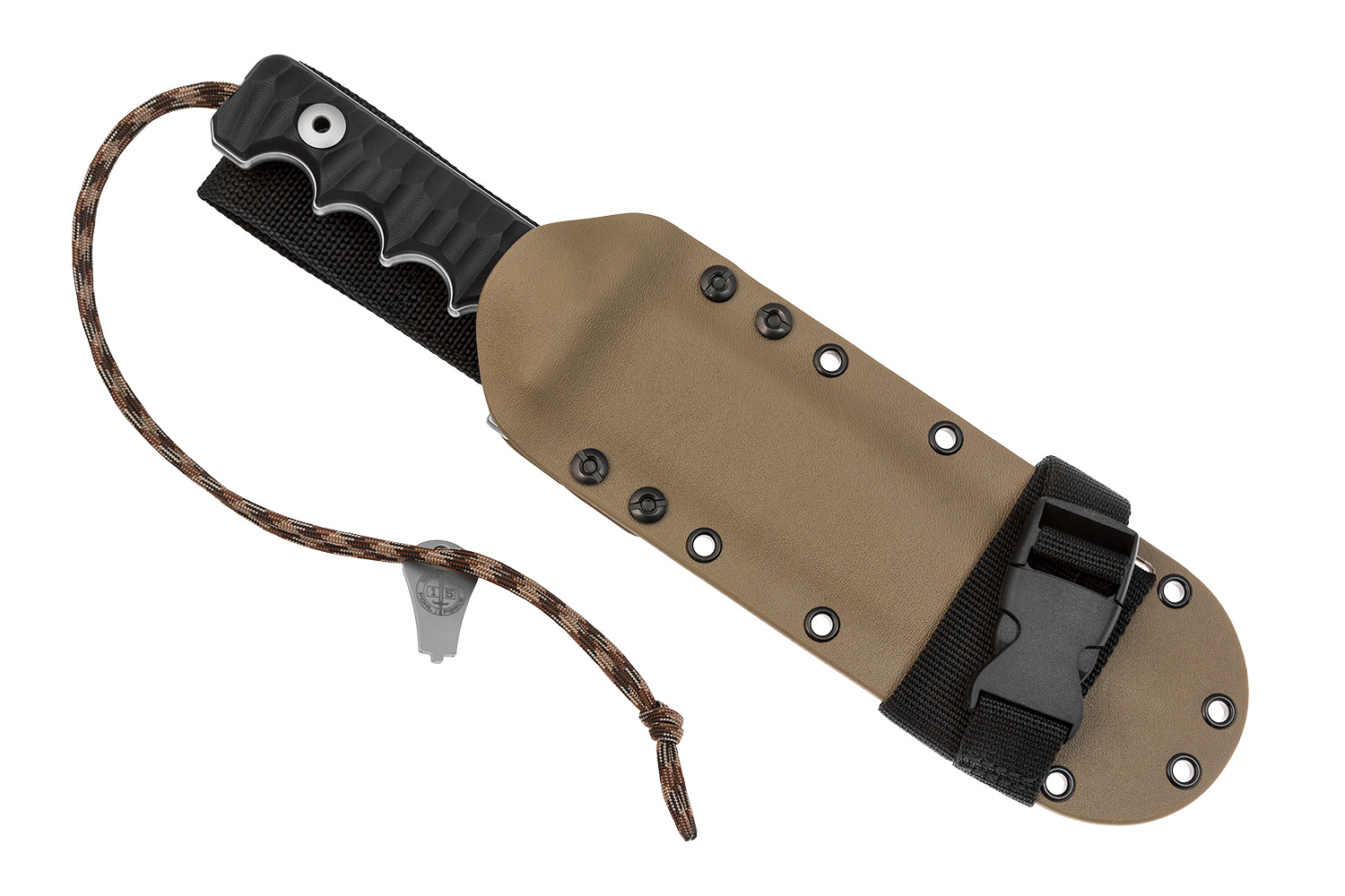 - Scheide: Kydex®-Scheide mit Gürtel-Adapter und Beingurt (passend für Gürtelbreiten bis 55mm)