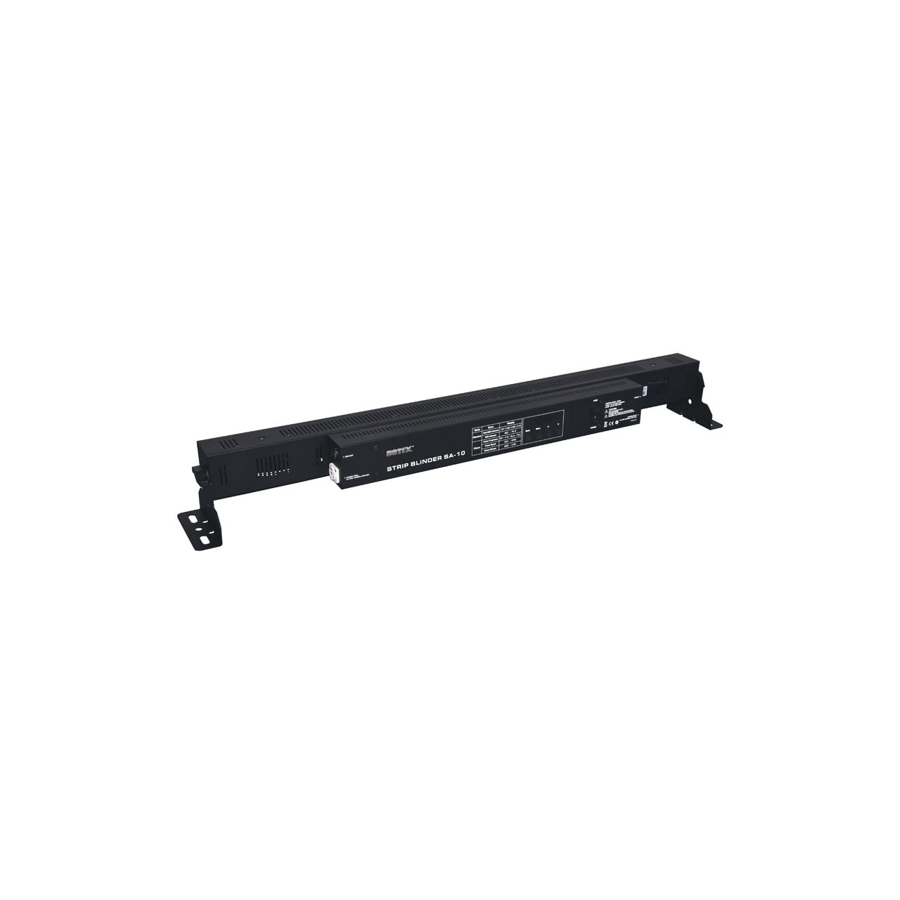 Der Strip Blinder ist eine Matrix, bestehend aus 10 x GU10 230V/75W Leuchtmitteln. Jedes dieser Leuchtmittel ist in Gruppen oder einzeln ansteuerbar, wodurch sich schöne Effekte erzeugen lassen. Im Fond bekommt man eine DMX Steuerbarkeit, aber auch 16 eingebaute Programme, die per Dimmer und Geschwindigkeitsanpassung noch mal verändert