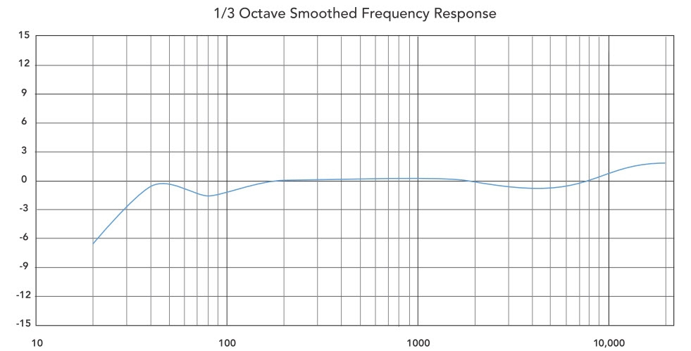Das von der britischen Tonmeisterlegende Tony Faulkner („TF“) mitentwickelte Nierenmikrofon zeichnet sich durch sein fein auflösendes und sehr musikalisches Klangbild aus. Charakteristisch im ansonsten geraden Frequenzgang sind die Absenkungen von -1 dB bei 60 Hz und -2 dB bei 70 Hz, um tieffrequentem „Mulm“ vorzubeugen.
