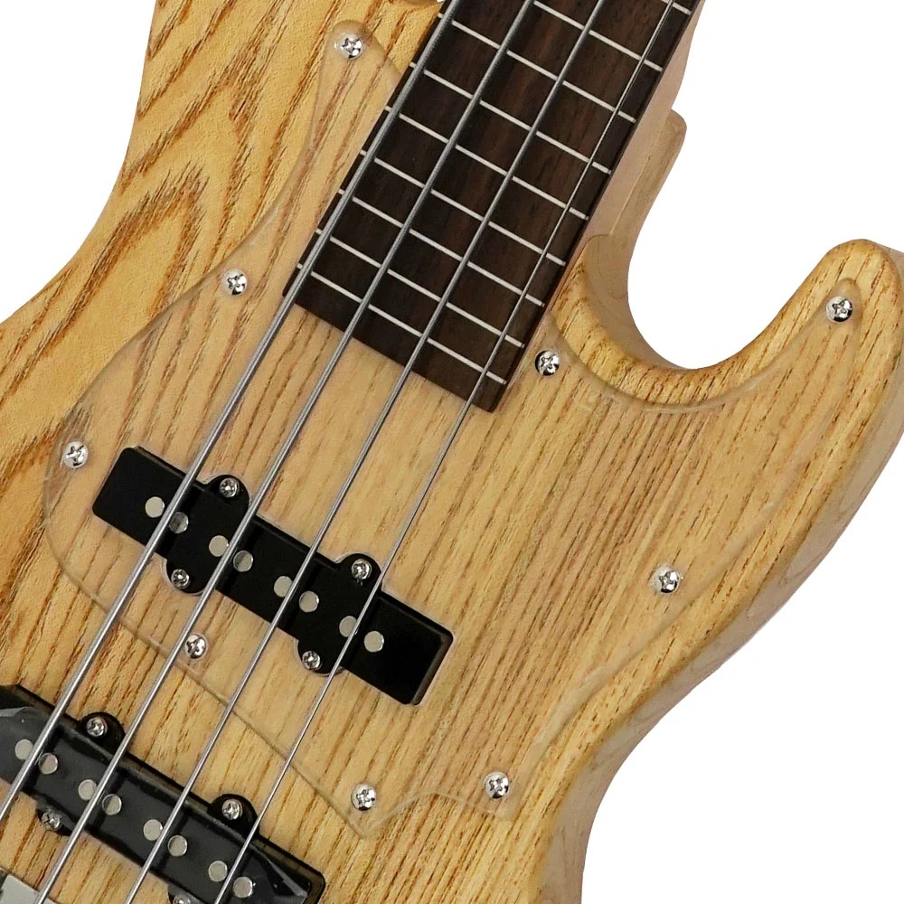 Der Tiny Bass TBJ-4450B bietet alles, was man von einem echten Jazz-Bass erwartet – nur eben deutlich kleiner. Mit einer kurzen Mensur von nur 23 Zoll und einer Gesamtlänge von rund 81 cm richtet sich dieses Modell an Bassistinnen und Bassisten, die volle Klangtiefe mit maximaler Mobilität kombinieren wollen. Der massive Esche-Korpus sorgt für einen satten, definierten Grundton mit klaren Mitten und kräftigem Punch – kein Vergleich zu herkömmlichen Travel-Bässen. Das offene Pore-Finish verleiht dem Instrument eine edle Optik mit natürlicher Haptik.