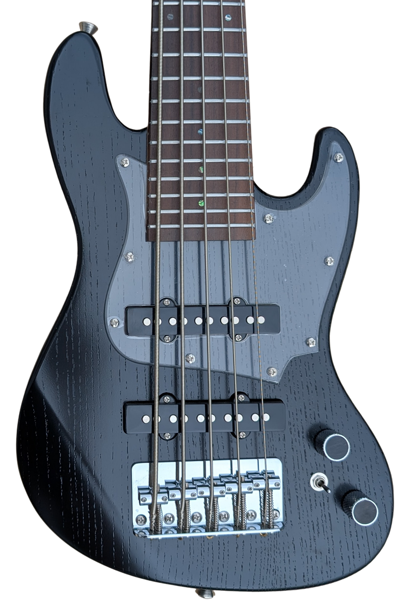 Der Korpus aus massiver Esche liefert ein durchsetzungsstarkes Klangbild mit definierter Ansprache, kräftigen Mitten und einem straffen Tieftonbereich – perfekt abgestimmt auf das fünfsaitige Layout. Unterstützt wird das Ganze von zwei klassischen JB-Style Singlecoil-Pickups, die in passiver Schaltung betrieben werden und über zwei Volume-Regler und einen Master-Tone individuell justiert werden können.