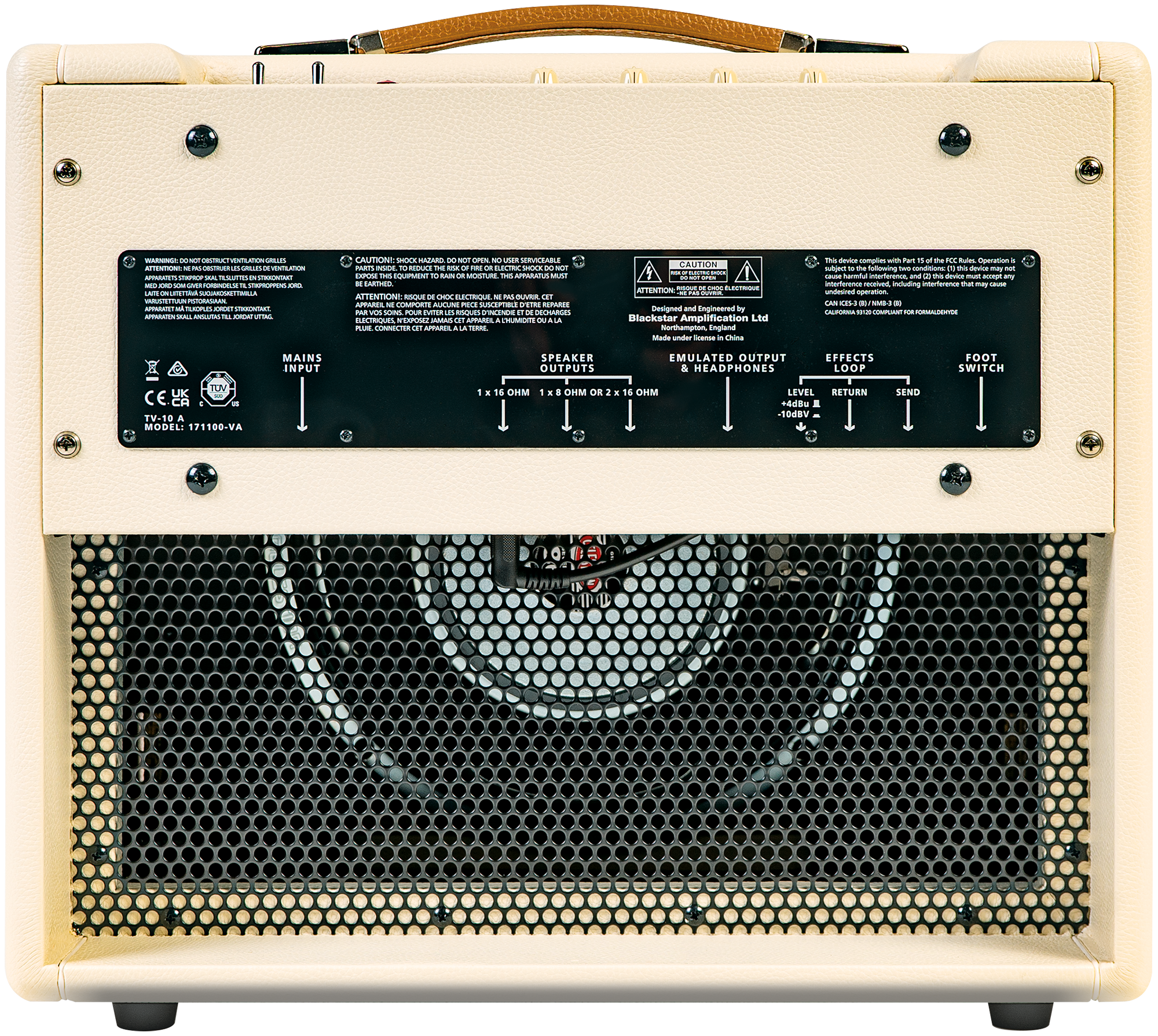 Der BLACKSTAR TV-10 A ist ein 10W Class A Röhrenverstärker mit 6L6 Endstufenröhren, der sich an klassischen amerikanischen Gitarren-Amps orientiert. Mit seinem kompakten Format eignet er sich perfekt für den Einsatz zu Hause, im Studio oder für kleinere Auftritte. Der TV-10 A ist ein dynamischer Verstärker mit glasklaren Clean-Sounds, knackigen Overdrives und weichen Lead-Sounds. Der Overdrive des Verstärkers lässt sich wahlweise über das Bedienfeld oder den mitgelieferten Fußschalter zuschalten. Ein Reverb und ein Einschleifweg für Effekte runden den Verstärker ab. Für leises Üben, Aufnehmen oder den Anschluss an eine PA gibt es einen emulierten Ausgang.