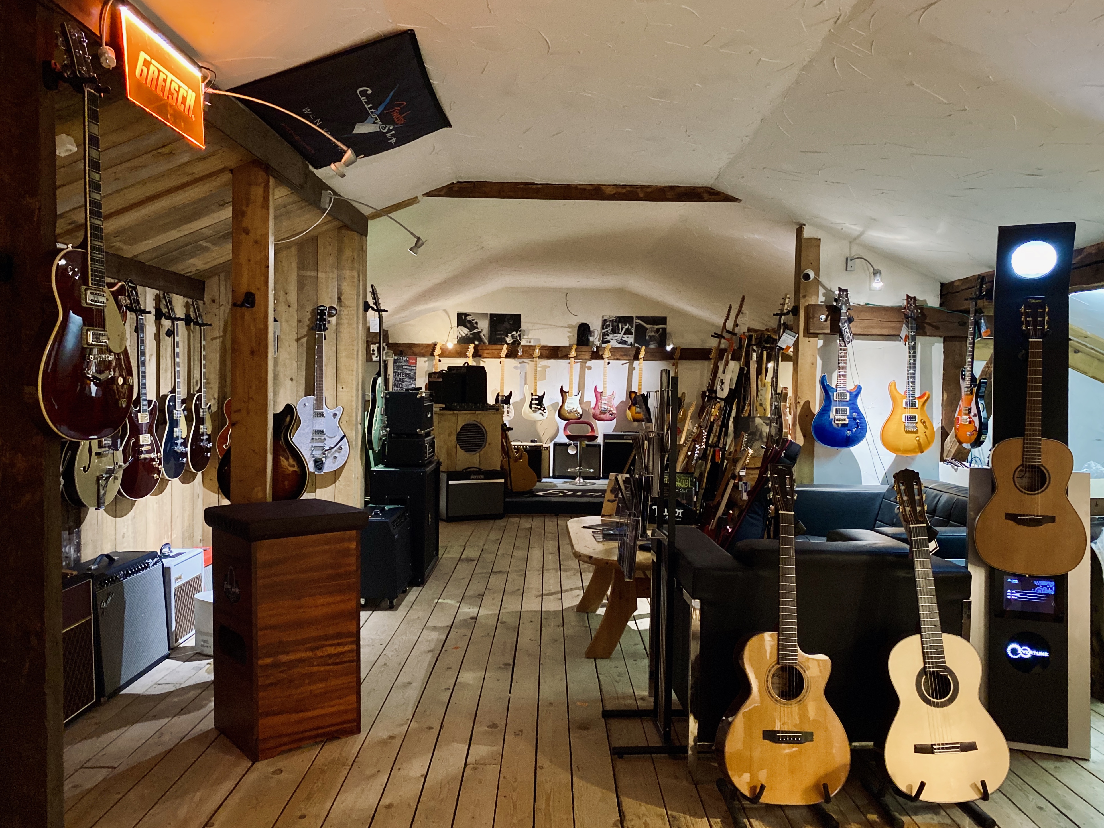 Auf 2500 Quadratmeter gibt es vieles zum Bestaunen, ausprobieren und zu hören. Im Obergeschoss des Zoundhouse befindet sich außerdem eine Ausstellung der besonderen Art. In unserem „Gitarrenhimmel“ geht jedem Gitarristen und Bassisten das Herz auf. Hier stehen die Gitarren ab einem Wert von 1500€. Nicht umsonst heißt die edle Abteilung "Gitarrenhimmel". Dort oben stehen neben den teuren Kostbarkeiten aus auch ganz exklusive Einzelstücke.