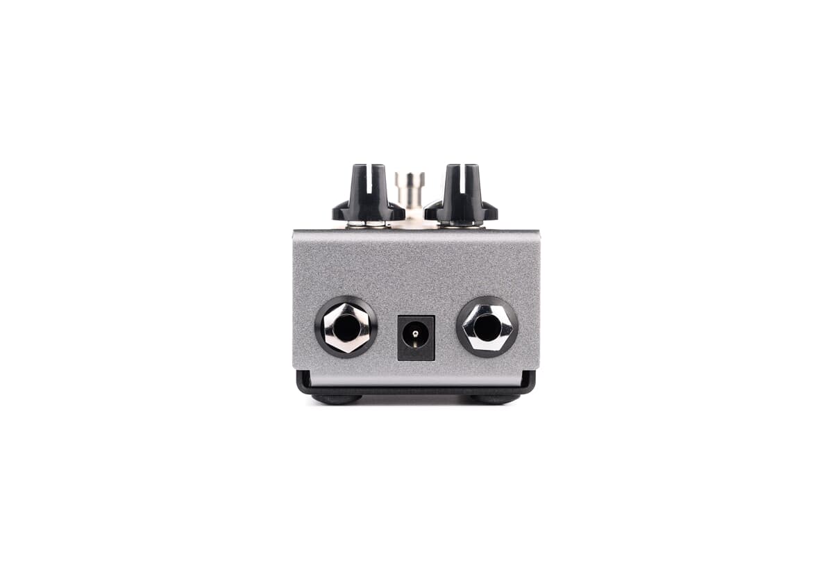 Mit dem Gain‑Regler bestimmst du die Intensität des Fuzz. Der Octave‑Regler legt fest, wie stark der Oktavton über dem Grundsound mitmischt — von dezent bis deutlich hörbar. Der Tone‑Knopf formt den Hochtonanteil nach der Fuzz‑Stufe, sodass du zwischen dunkleren und spitzeren Charakteren wählen kannst. Über Volume regelst du die Ausgangslautstärke deines Effekts. Ein besonderer Regler namens Wear simuliert den Einfluss eines entladenen bzw. „angeschlagenen“ Batteriezustands – ideal, wenn du deinen Sound mit einem etwas „müden“ Ton konturieren willst. Zusätzlich kannst du über den Initial Power State‑Schalter wählen, ob das Pedal beim Einschalten direkt aktiv geschaltet sein soll oder erst durch Betätigung in den Effekt‑Modus geht.