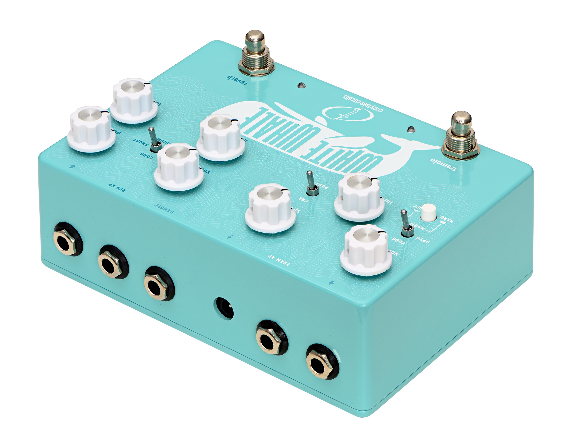 Zwei Fußschalter aktivieren Reverb und Tremolo jeweils unabhängig – und du kannst einstellen, mit welchem Effekt das Pedal beim Einschalten starten soll. Mit Remote‑Jack, Expression‑Inputs und True Bypass bleibt das White Whale V2 ideal in moderne Pedalketten integrierbar. Wenn du deinem Sound dieses warme, lebendige, organische Reverb‑Tremolo‑Gefühl verleihen willst, ist dieses Pedal deine perfekte „Walbegegnung“.