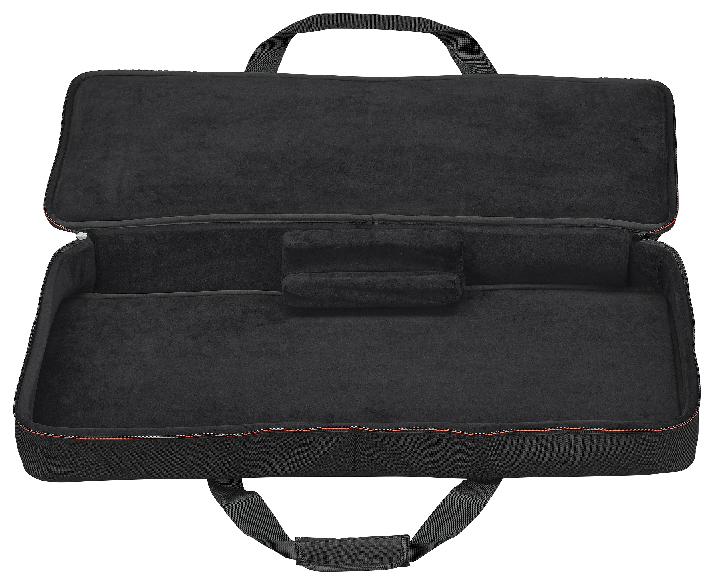 Durch die große Trageschlaufe, den stabilen Griff auf der Rückseite und die integrierten Schultergurte lässt sich das Case komfortabel tragen oder schultern – ideal für Musiker:innen, die viel unterwegs sind. Mit seinem sportlich-schlichten Design in Schwarz mit weißen und roten Akzenten verbindet das SC-MODX M6 Schutz, Stil und Alltagstauglichkeit auf überzeugende Weise.